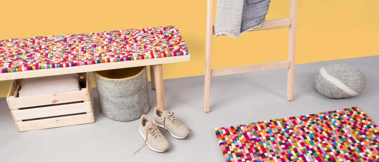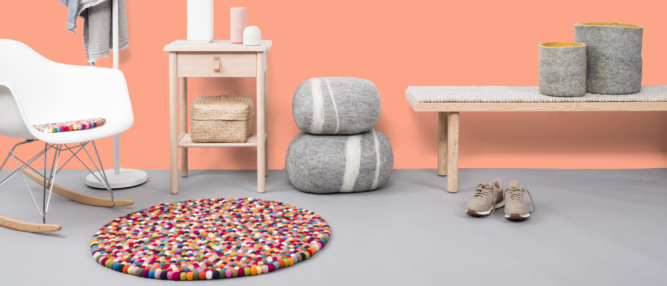 Naturligt smukke og praktiske på samme tid - flade design filttæpper til entreen fra myfelt.