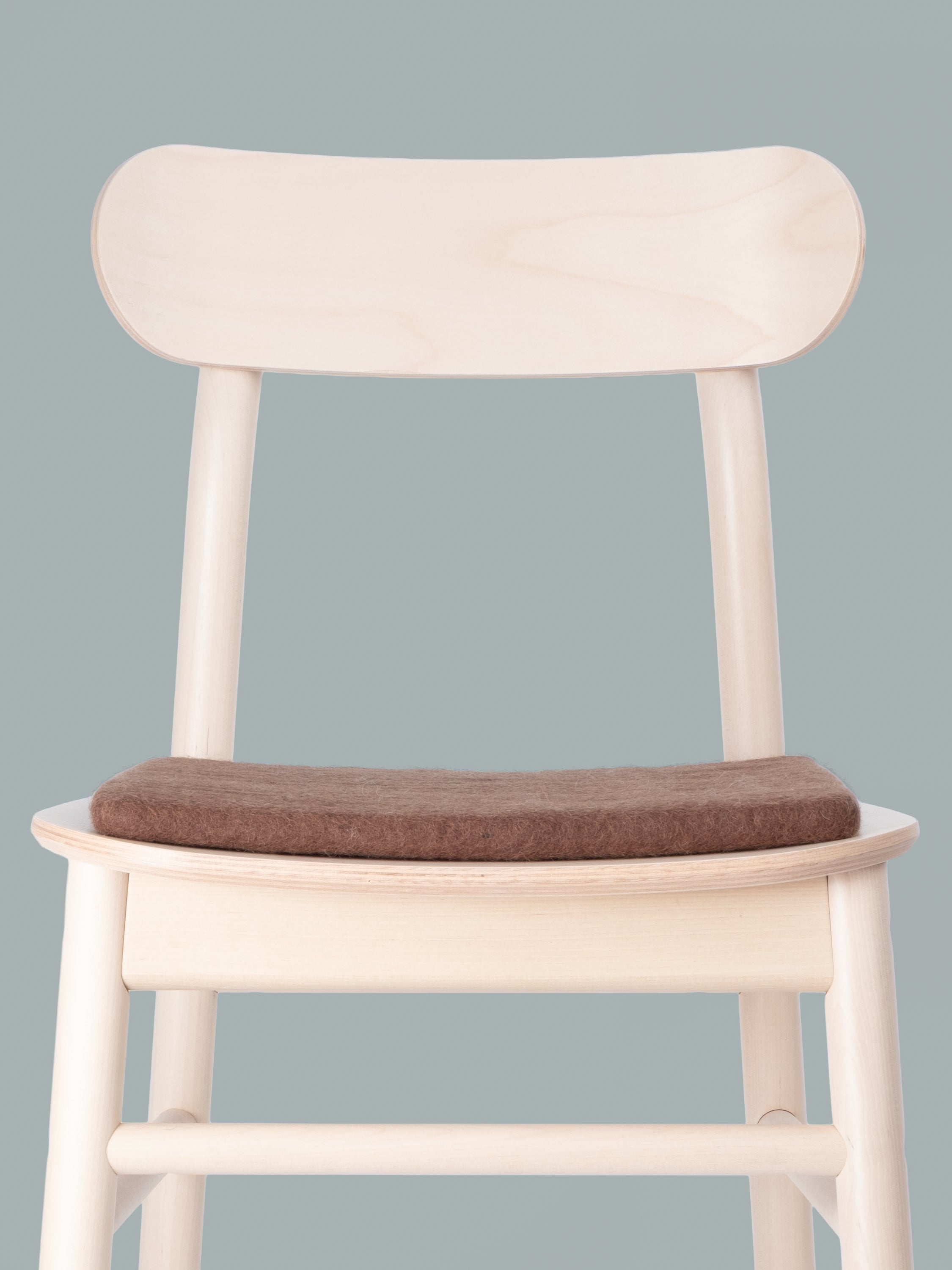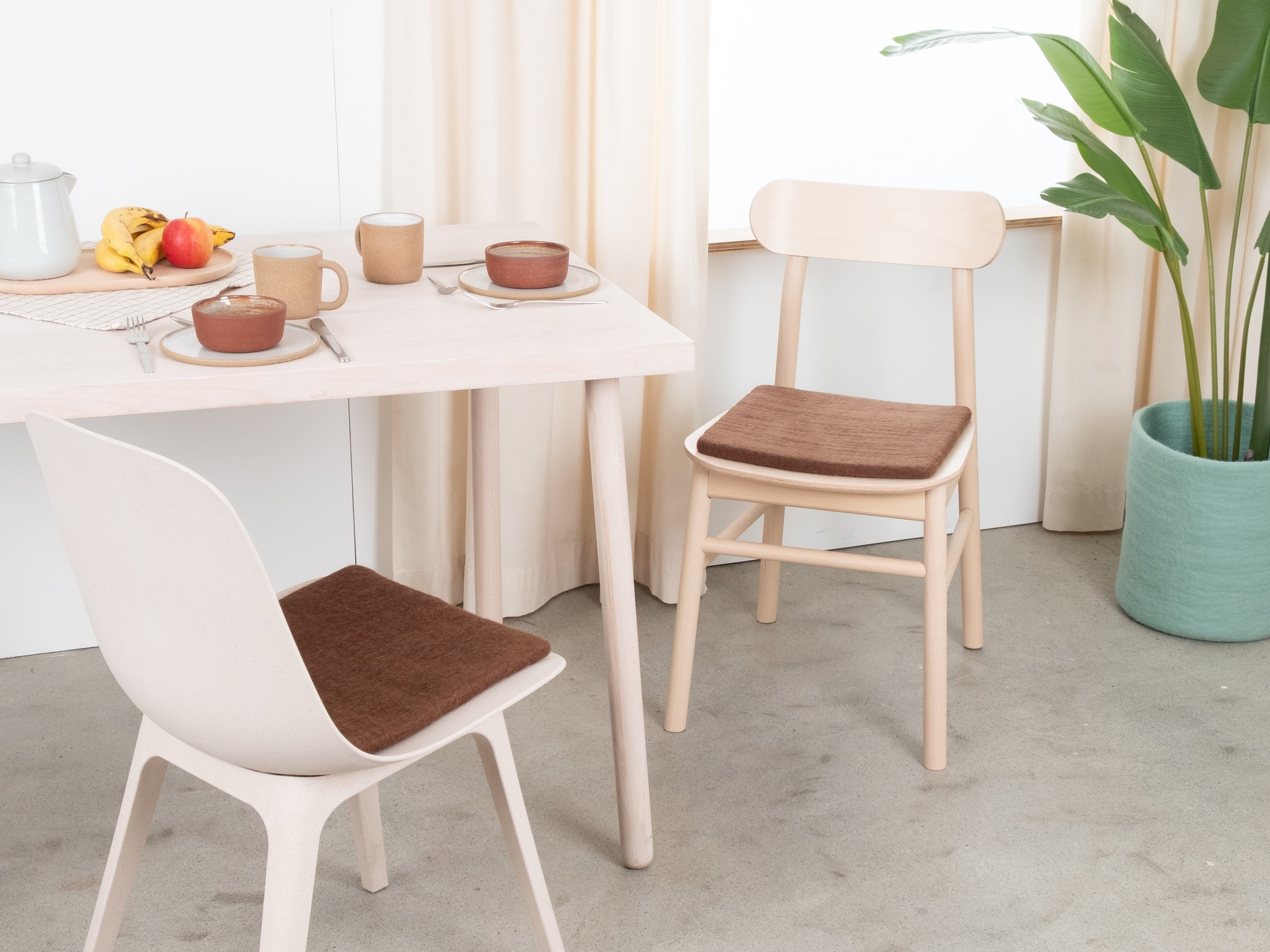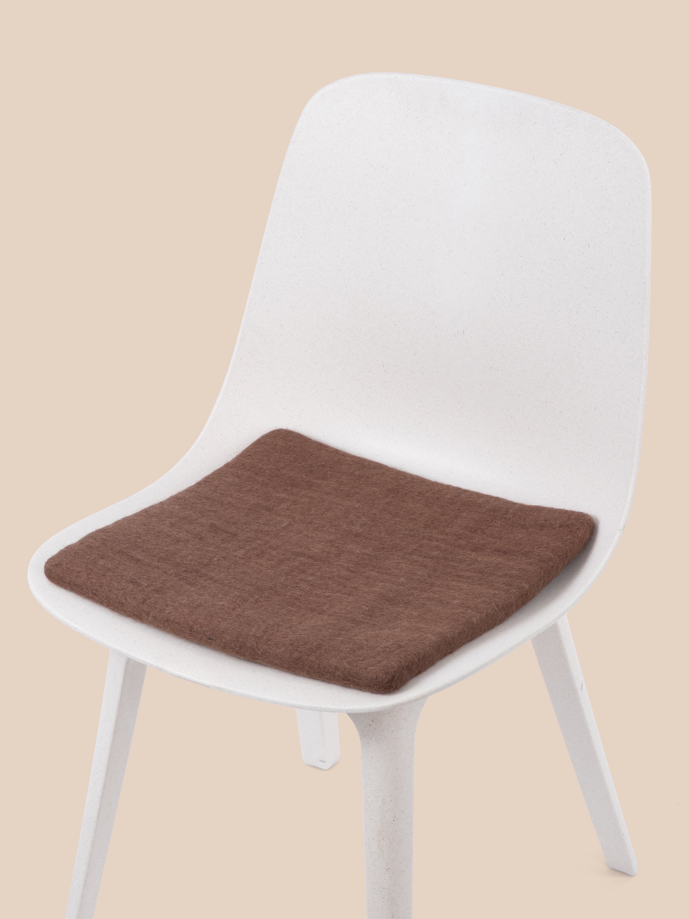 Den brune, flade sædeunderlag Egon giver varme og blødhed til din yndlingsstol. Fremstillet af ren ny uld, håndlavet i Nepal og produceret under fair forhold. myfelt sædehynder er vand- og smudsafvisende og kan bruges på begge sider.