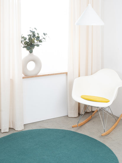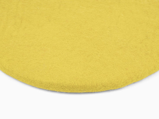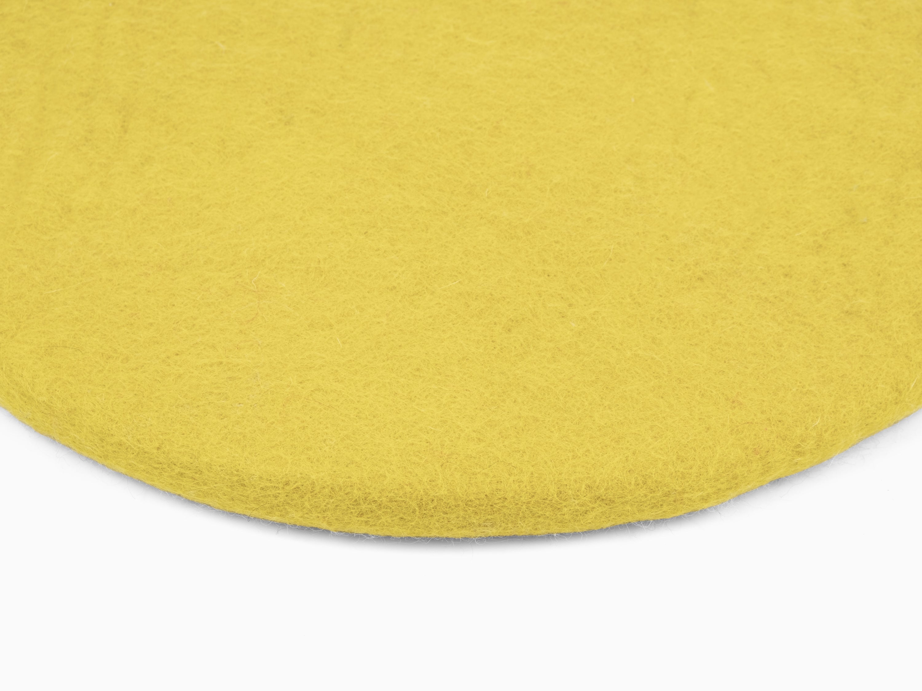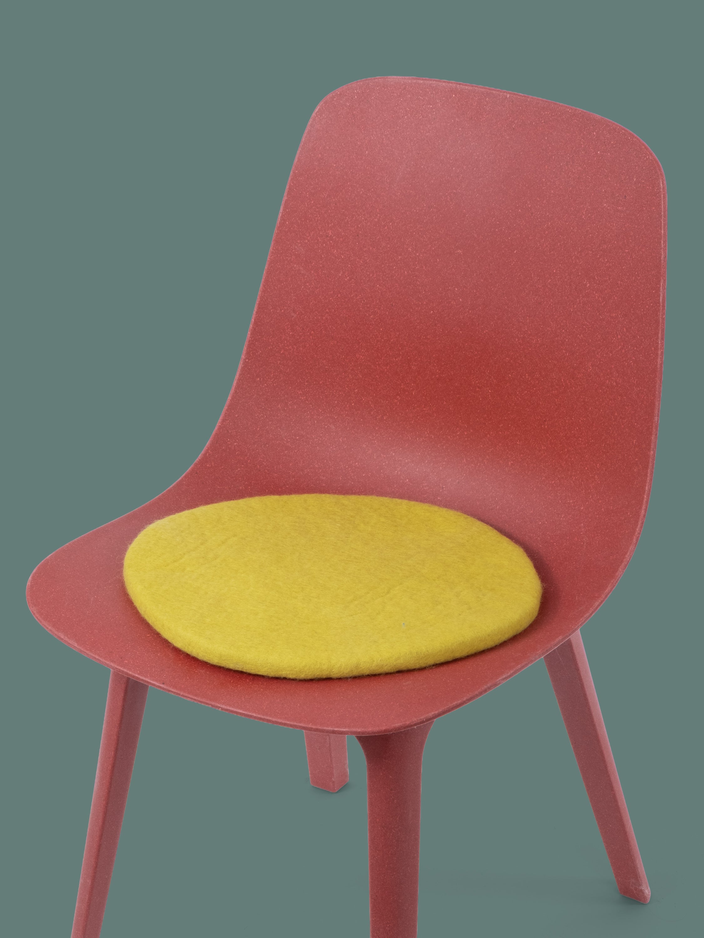 Runde, grøngule flade sædeunderlag af ren ny uld.