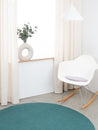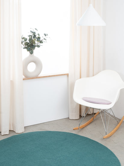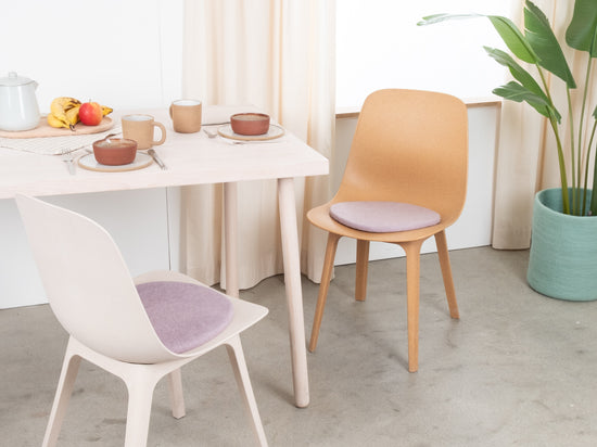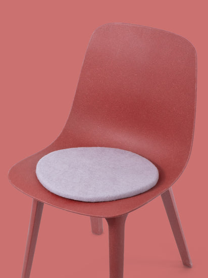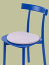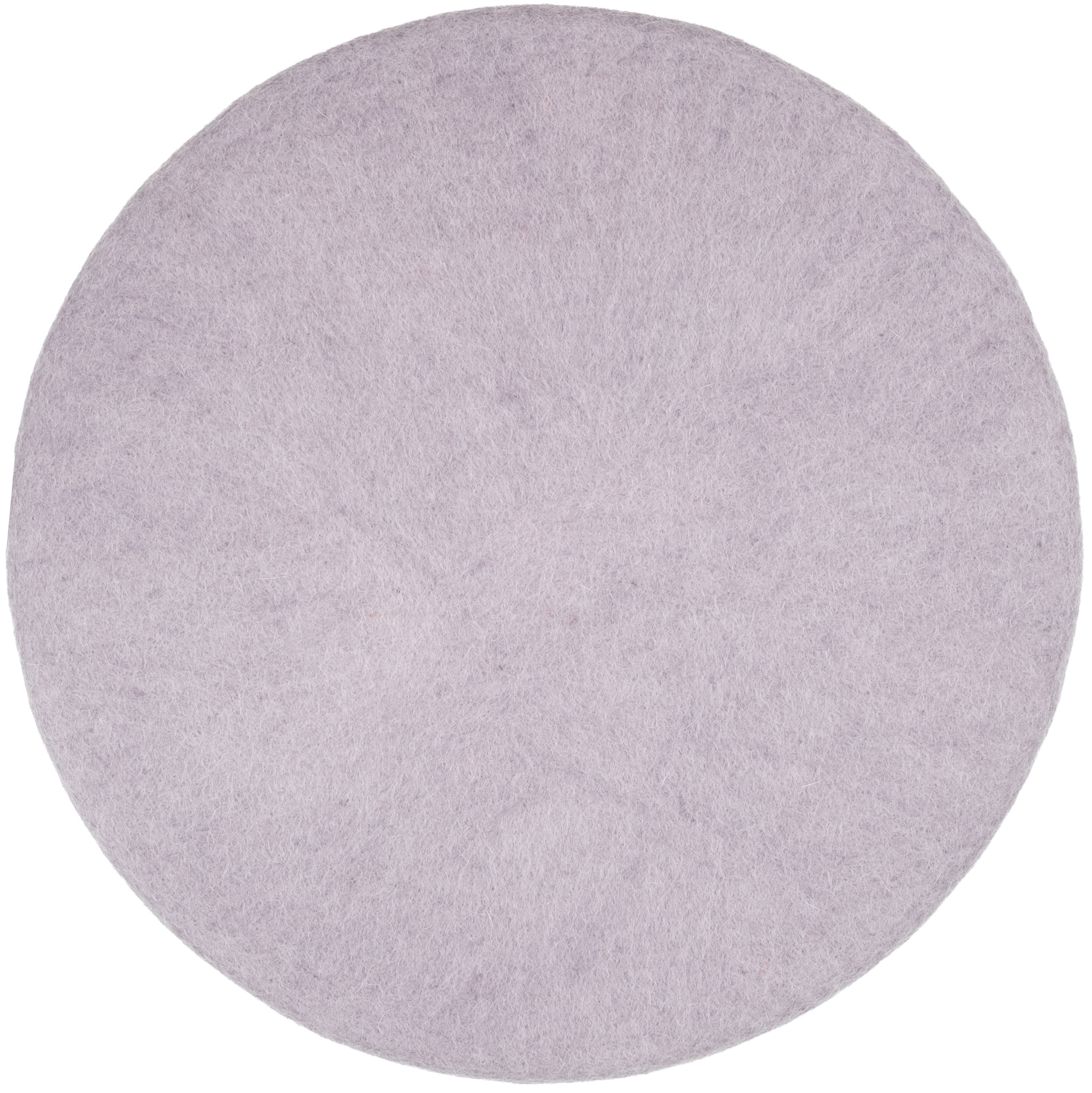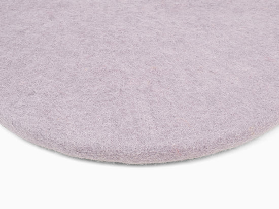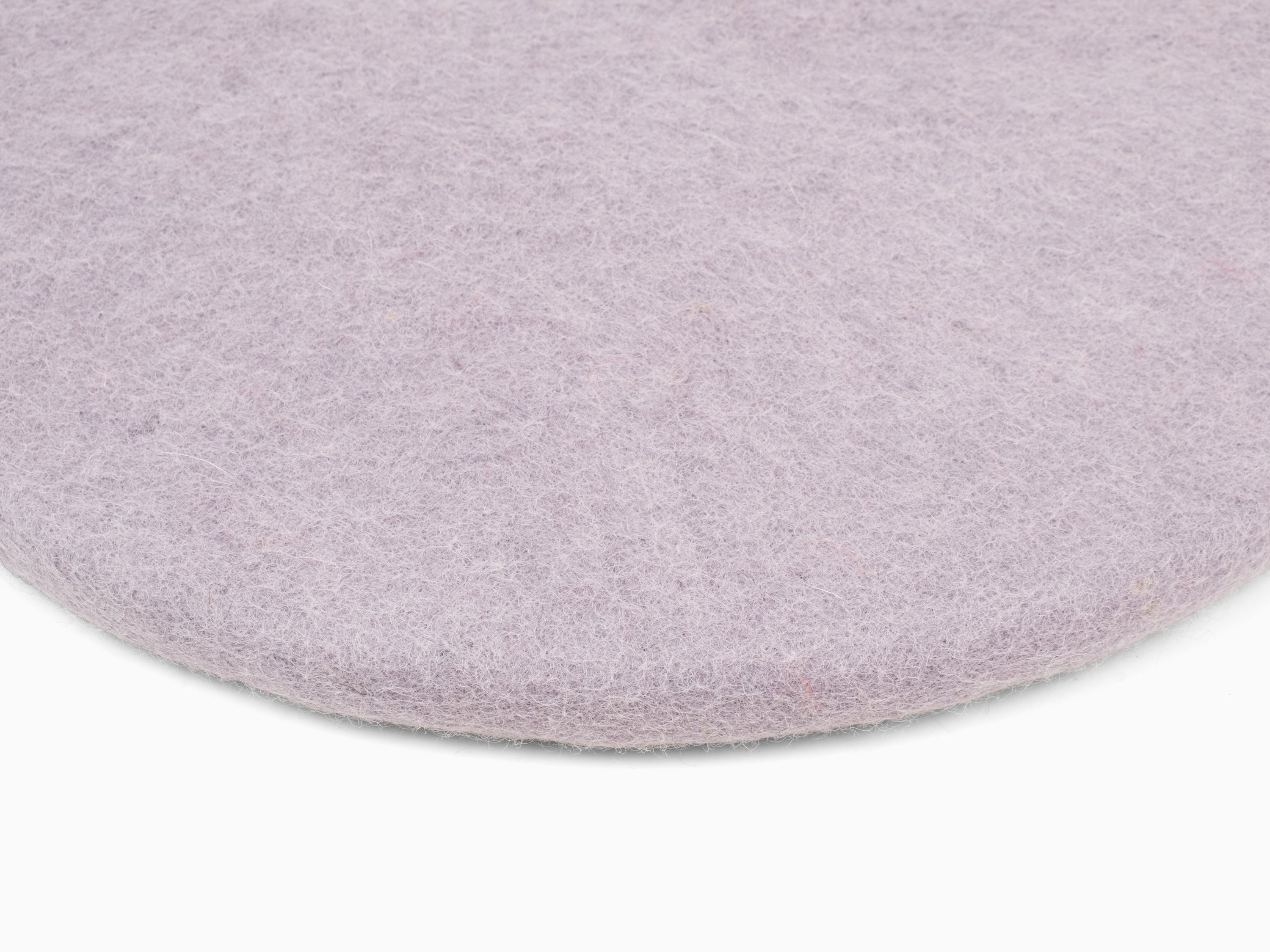 Runde, lyslilla flade sædeunderlag af ren ny uld.