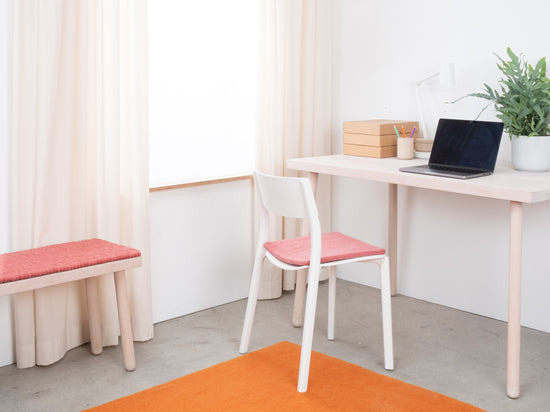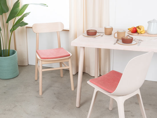Den koralfarvede, flade sædeunderlag Vera giver varme og blødhed til din yndlingsstol. Fremstillet af ren ny uld, håndlavet i Nepal og produceret under fair forhold. myfelt sædehynder er vand- og smudsafvisende og kan bruges på begge sider.