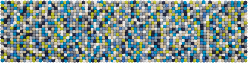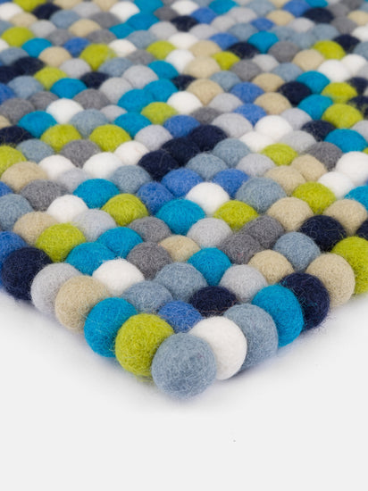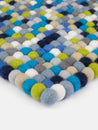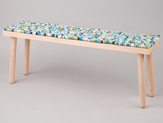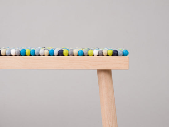 Flerfarvet kuglebænkepude i filt lavet af jomfruuld i din ønskede størrelse.
