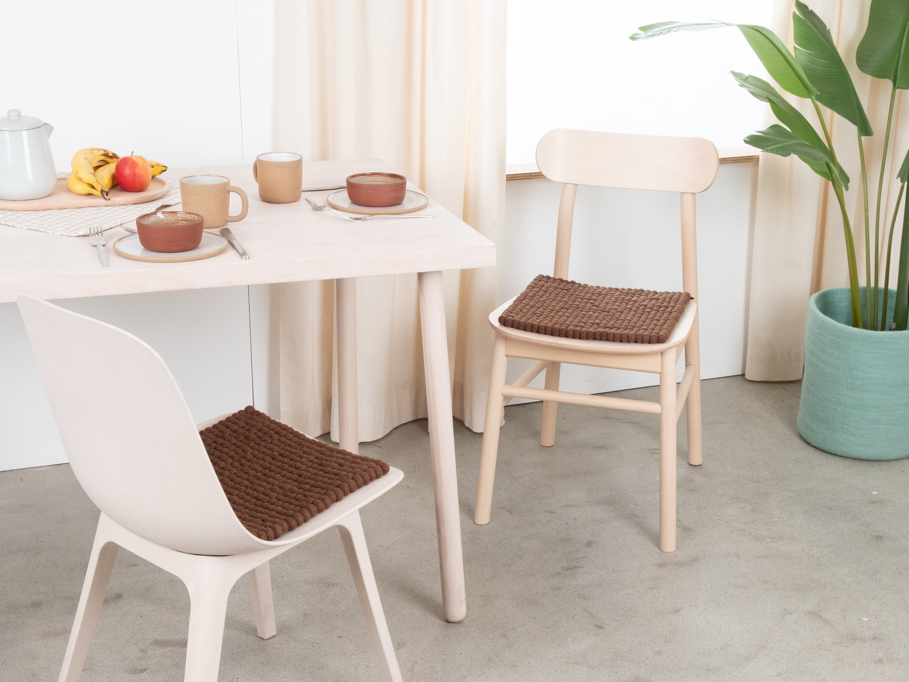 Den brune sædeunderlag Egon giver varme og blødhed til din yndlingsstol. Fremstillet af ren ny uld, håndlavet i Nepal og produceret under fair forhold. myfelt sædehynder er vand- og smudsafvisende og kan bruges på begge sider.