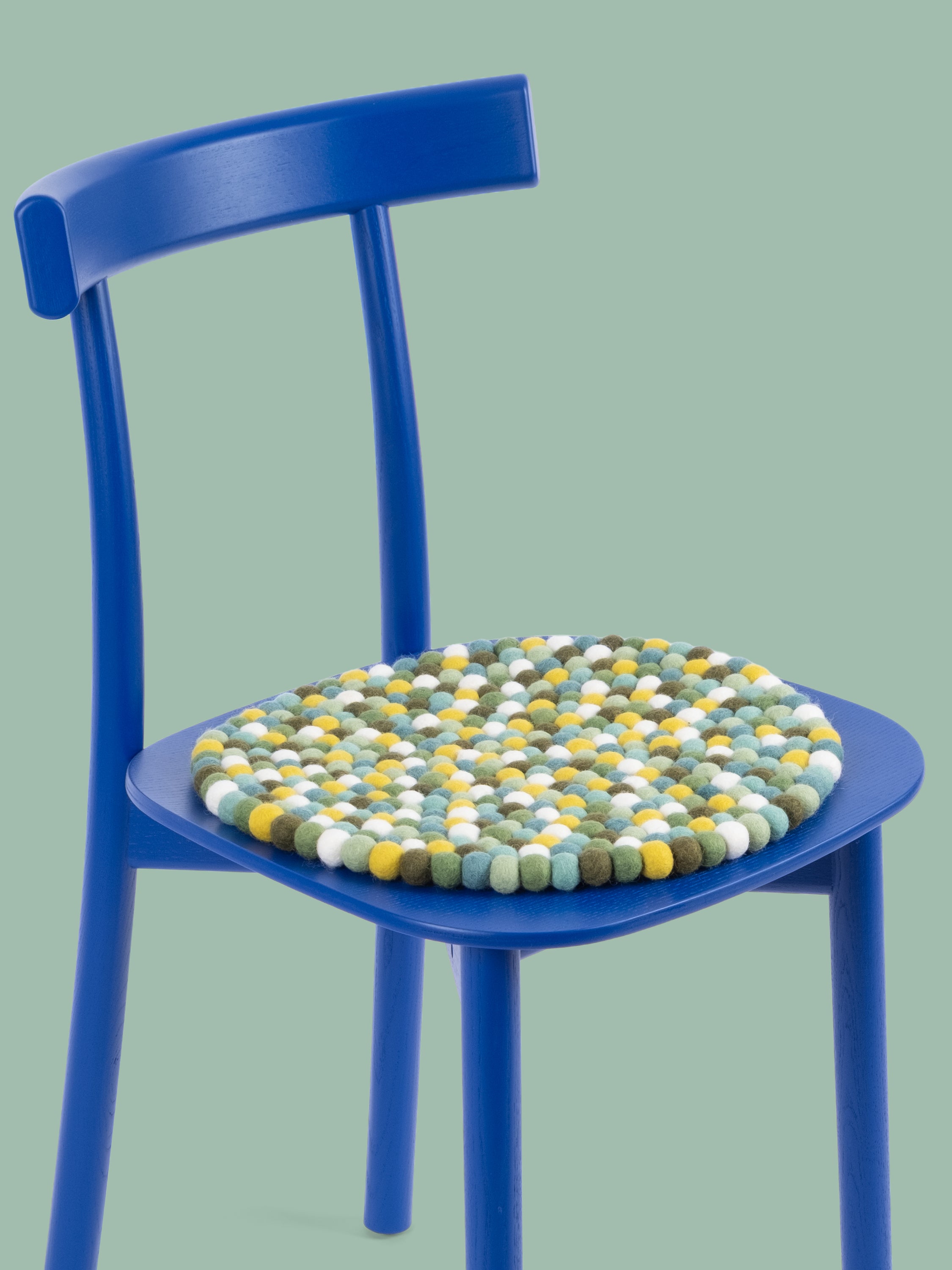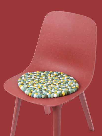 Den flerfarvede sædeunderlag Finn giver varme og blødhed til din yndlingsstol. Fremstillet af ren ny uld, håndlavet i Nepal og produceret under fair forhold. myfelt sædehynder er vand- og smudsafvisende og kan bruges på begge sider.