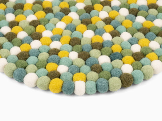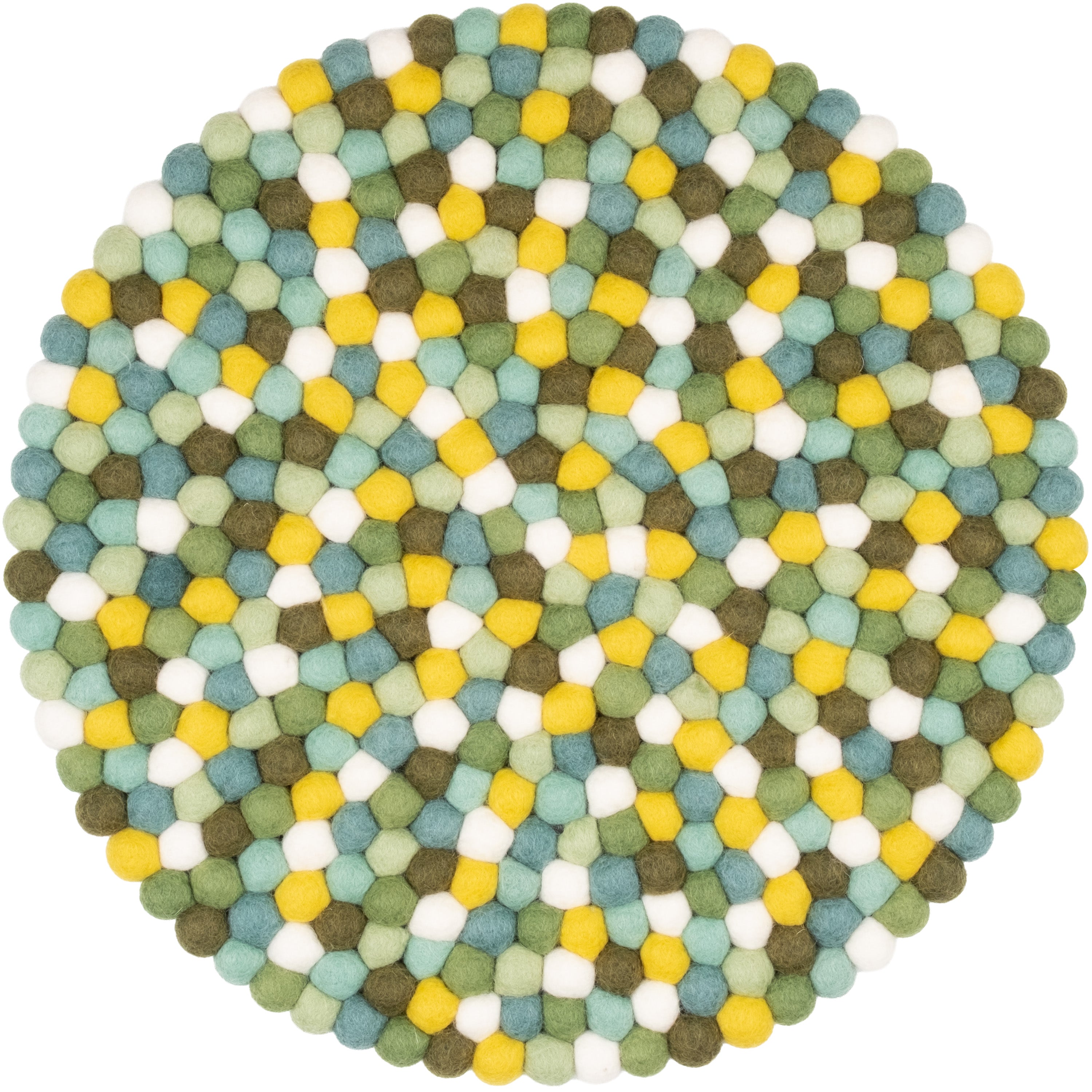 Runde, flerfarvede sædeunderlag af ren ny uld.