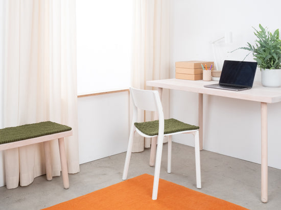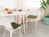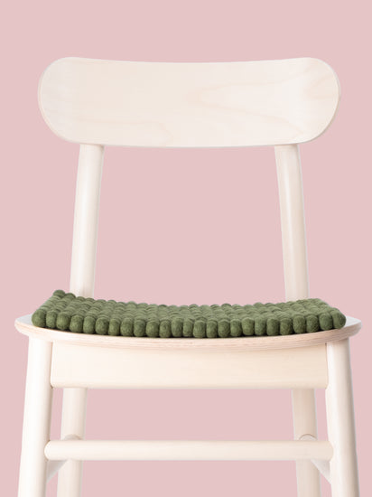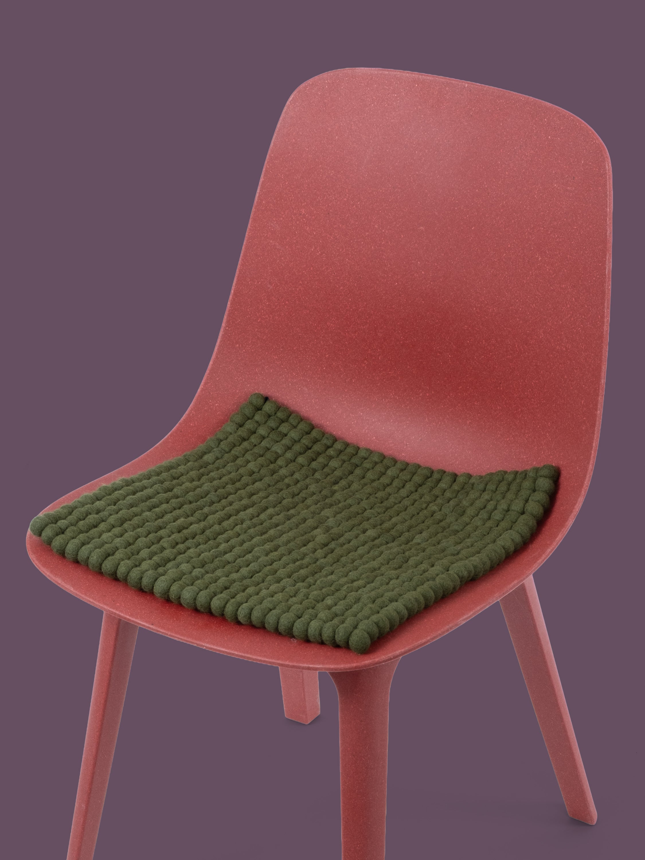 Den mørkegrønne sædeunderlag Jost giver varme og blødhed til din yndlingsstol. Fremstillet af ren ny uld, håndlavet i Nepal og produceret under fair forhold. myfelt sædehynder er vand- og smudsafvisende og kan bruges på begge sider.