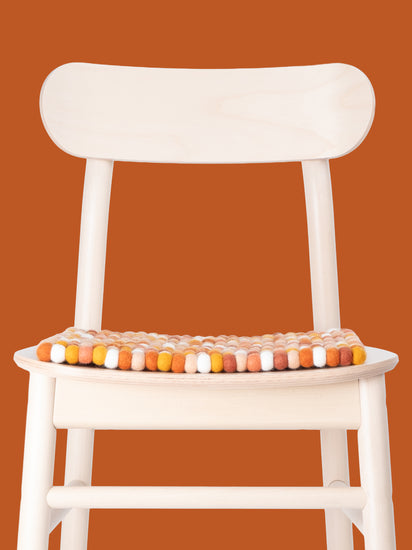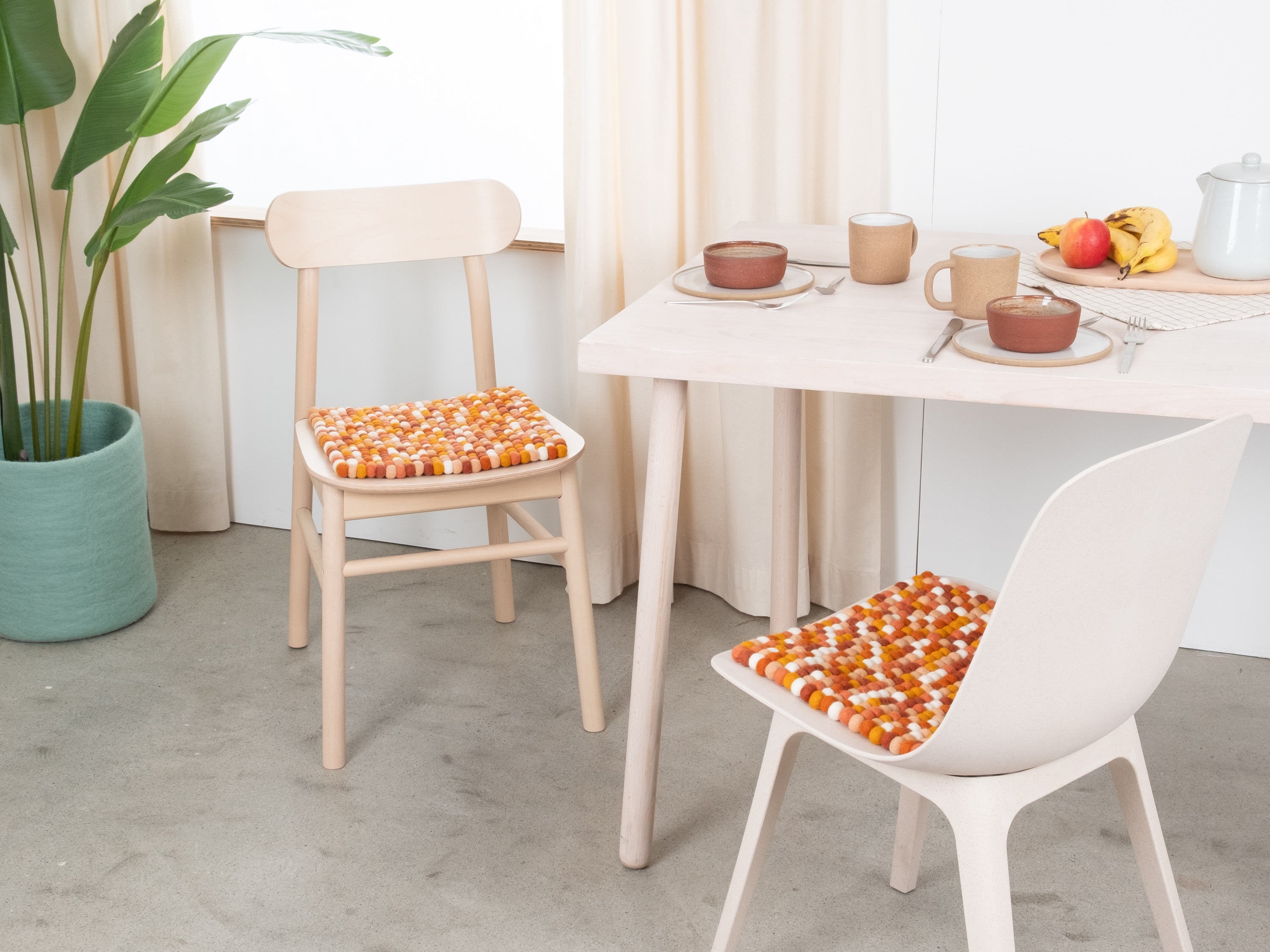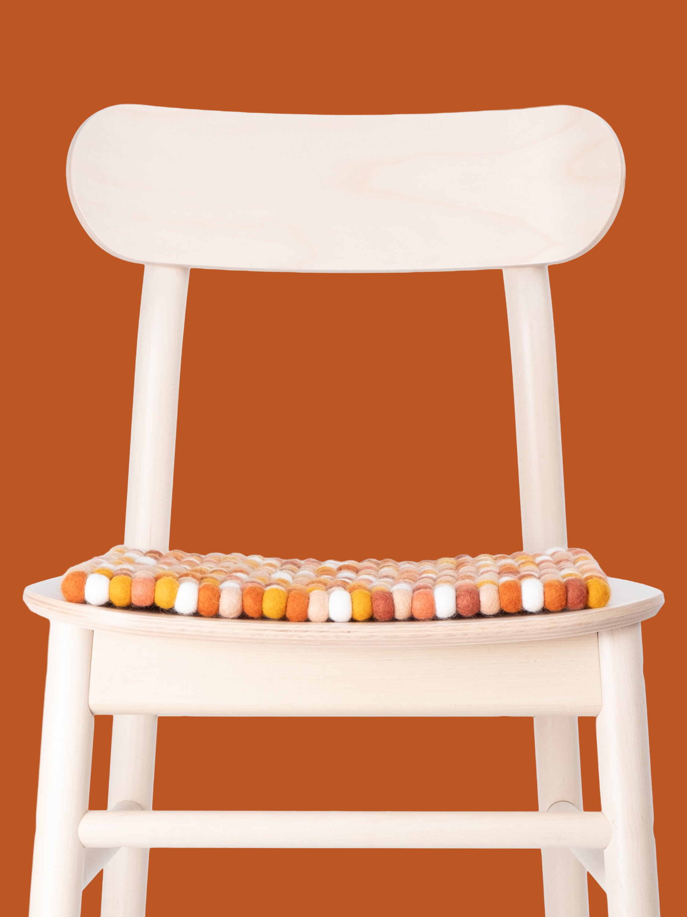 Den flerfarvede sædeunderlag Juna giver varme og blødhed til din yndlingsstol. Fremstillet af ren ny uld, håndlavet i Nepal og produceret under fair forhold. myfelt sædehynder er vand- og smudsafvisende og kan bruges på begge sider.