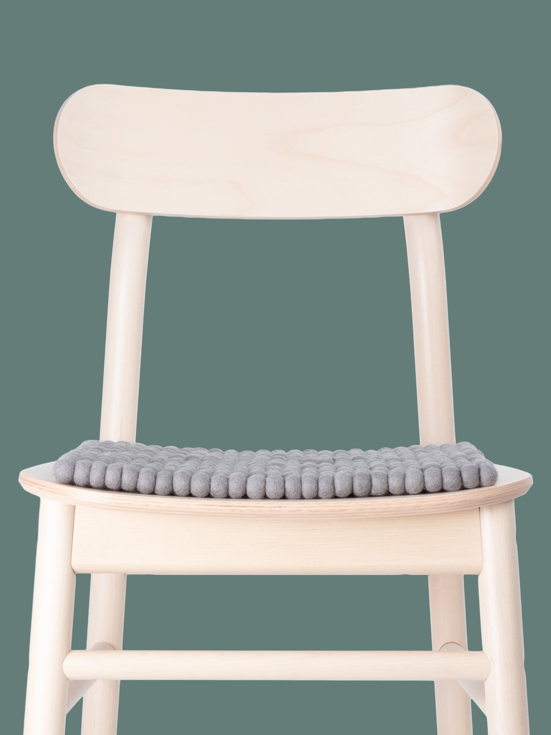 Firkantede, grå sædeunderlag af ren ny uld.