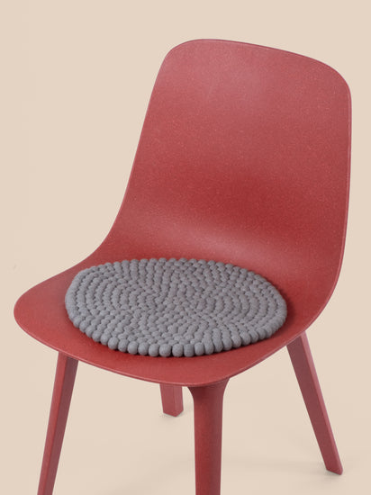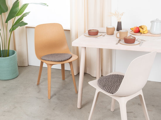 Runde, grå sædeunderlag af ren ny uld.