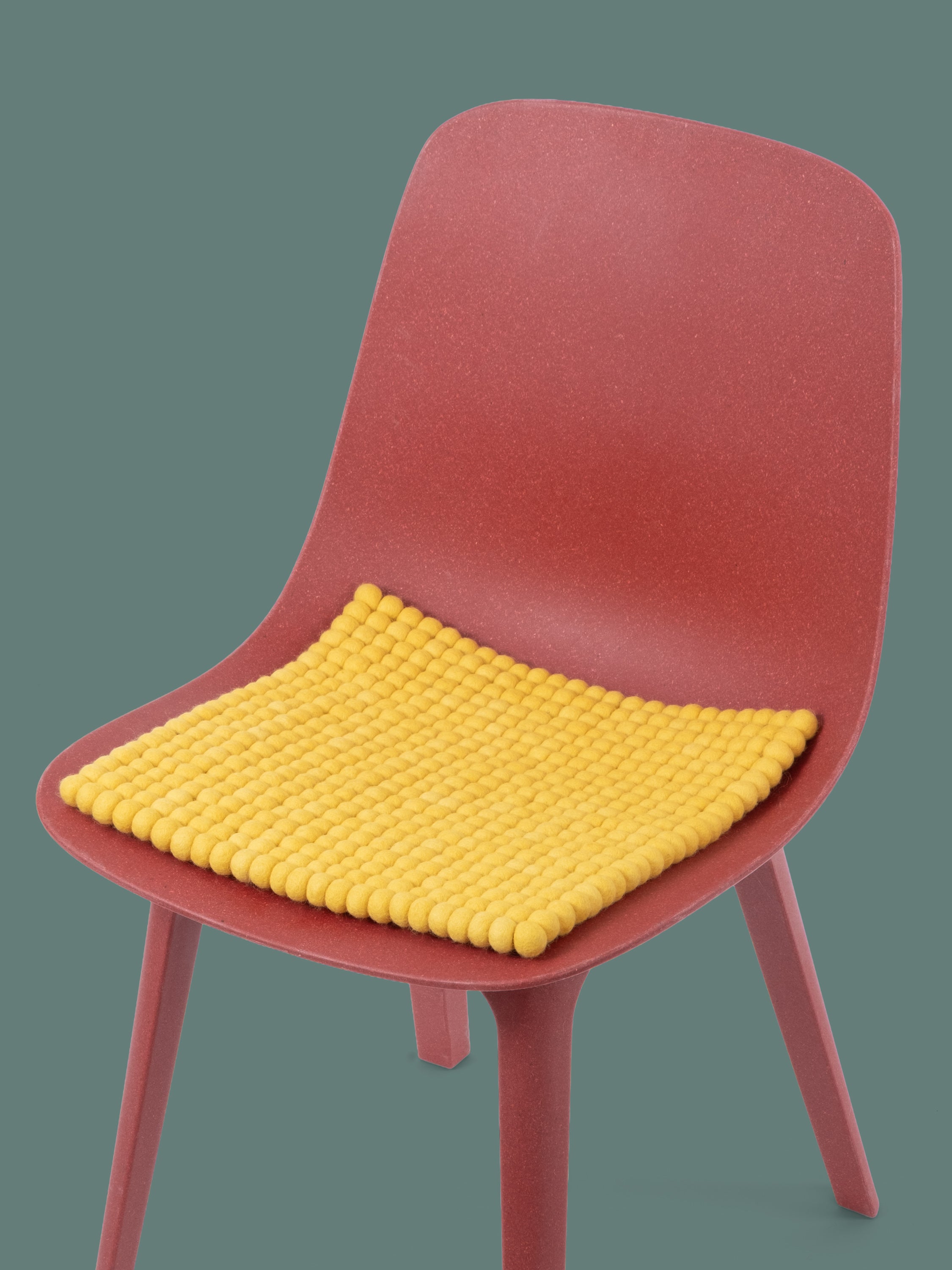 Firkantede, gule sædeunderlag af ren ny uld.