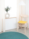 Den gule sædeunderlag Kira giver varme og blødhed til din yndlingsstol. Fremstillet af ren ny uld, håndlavet i Nepal og produceret under fair forhold. myfelt sædehynder er vand- og smudsafvisende og kan bruges på begge sider.