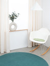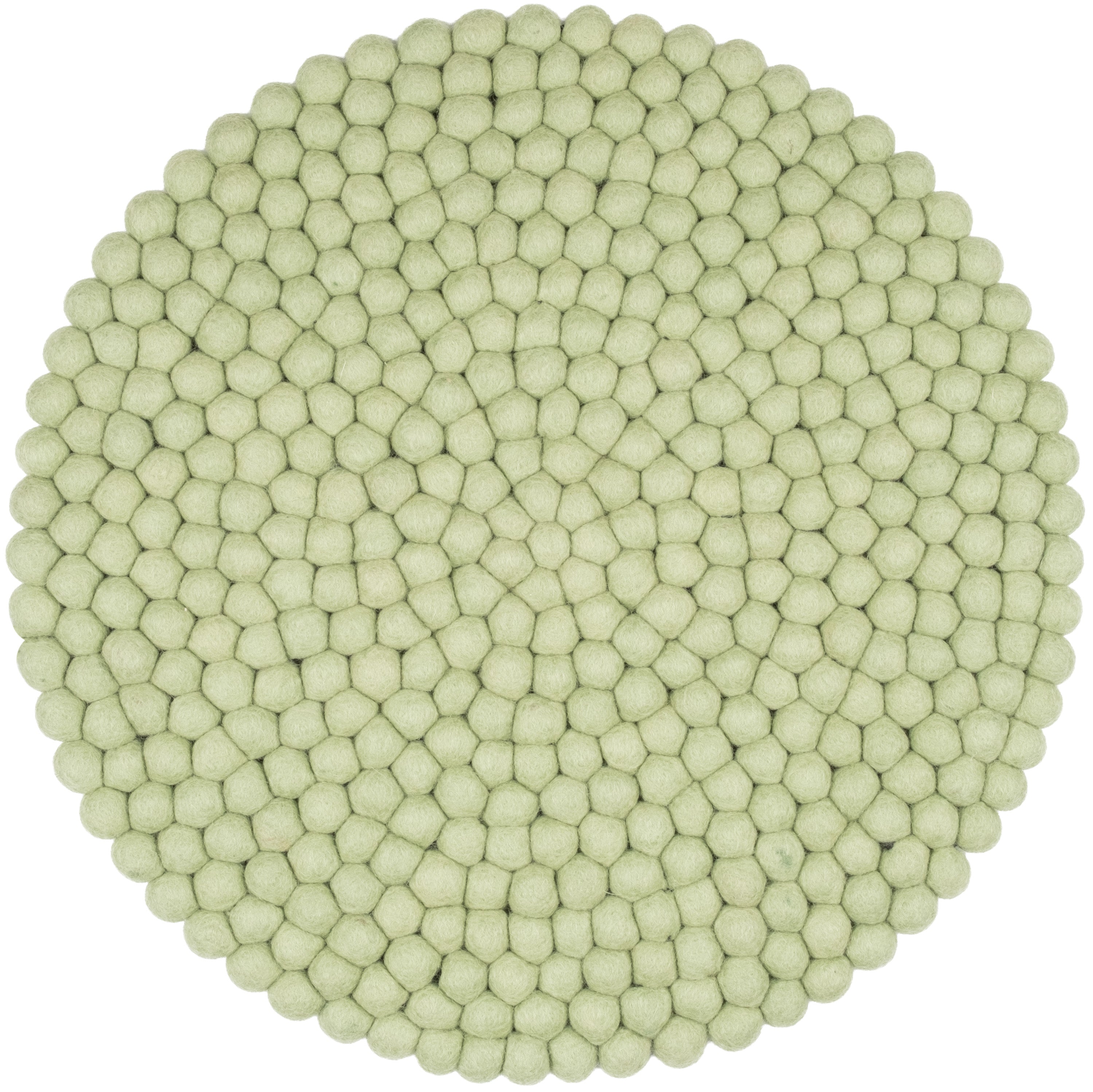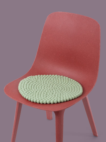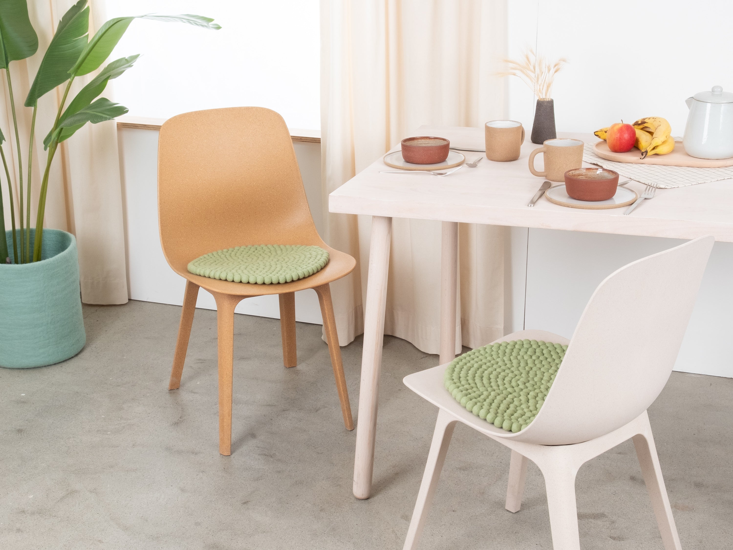 Runde, lysegrønne sædeunderlag af ren ny uld.