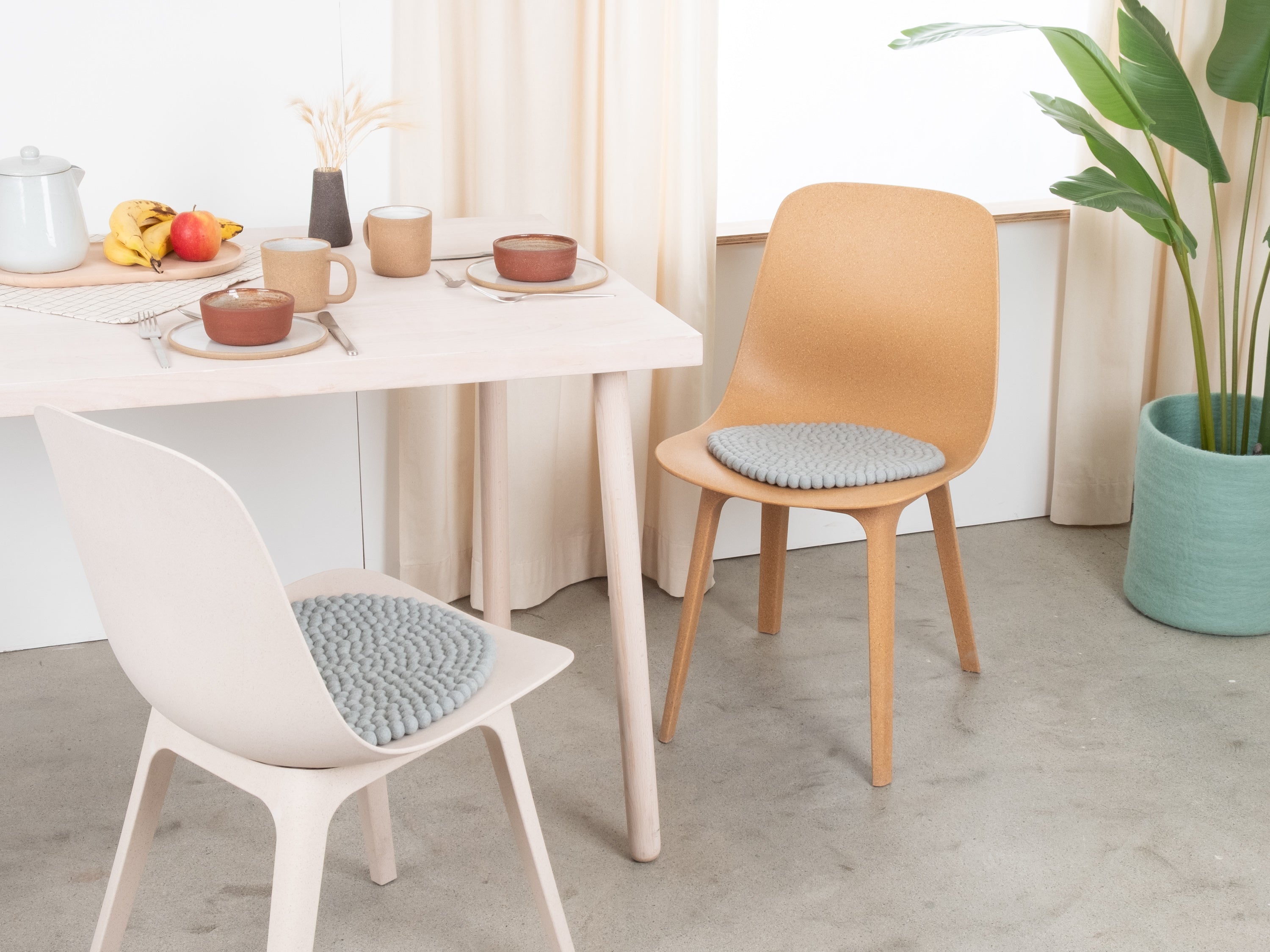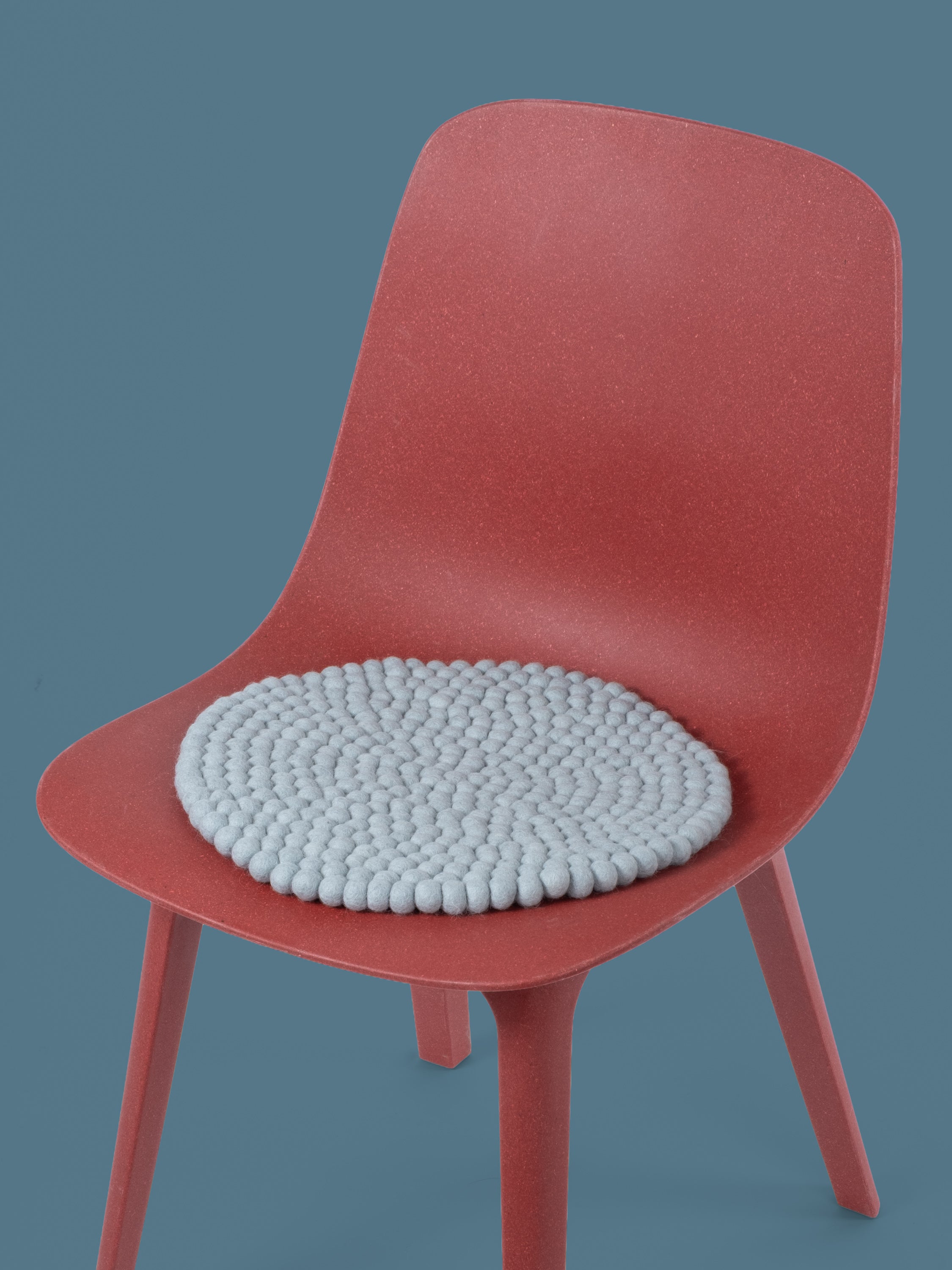 Den lyseblå sædeunderlag Liv giver varme og blødhed til din yndlingsstol. Fremstillet af ren ny uld, håndlavet i Nepal og produceret under fair forhold. myfelt sædehynder er vand- og smudsafvisende og kan bruges på begge sider.