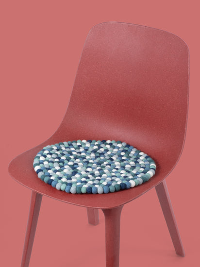 Den flerfarvede sædeunderlag Mare giver varme og blødhed til din yndlingsstol. Fremstillet af ren ny uld, håndlavet i Nepal og produceret under fair forhold. myfelt sædehynder er vand- og smudsafvisende og kan bruges på begge sider.
