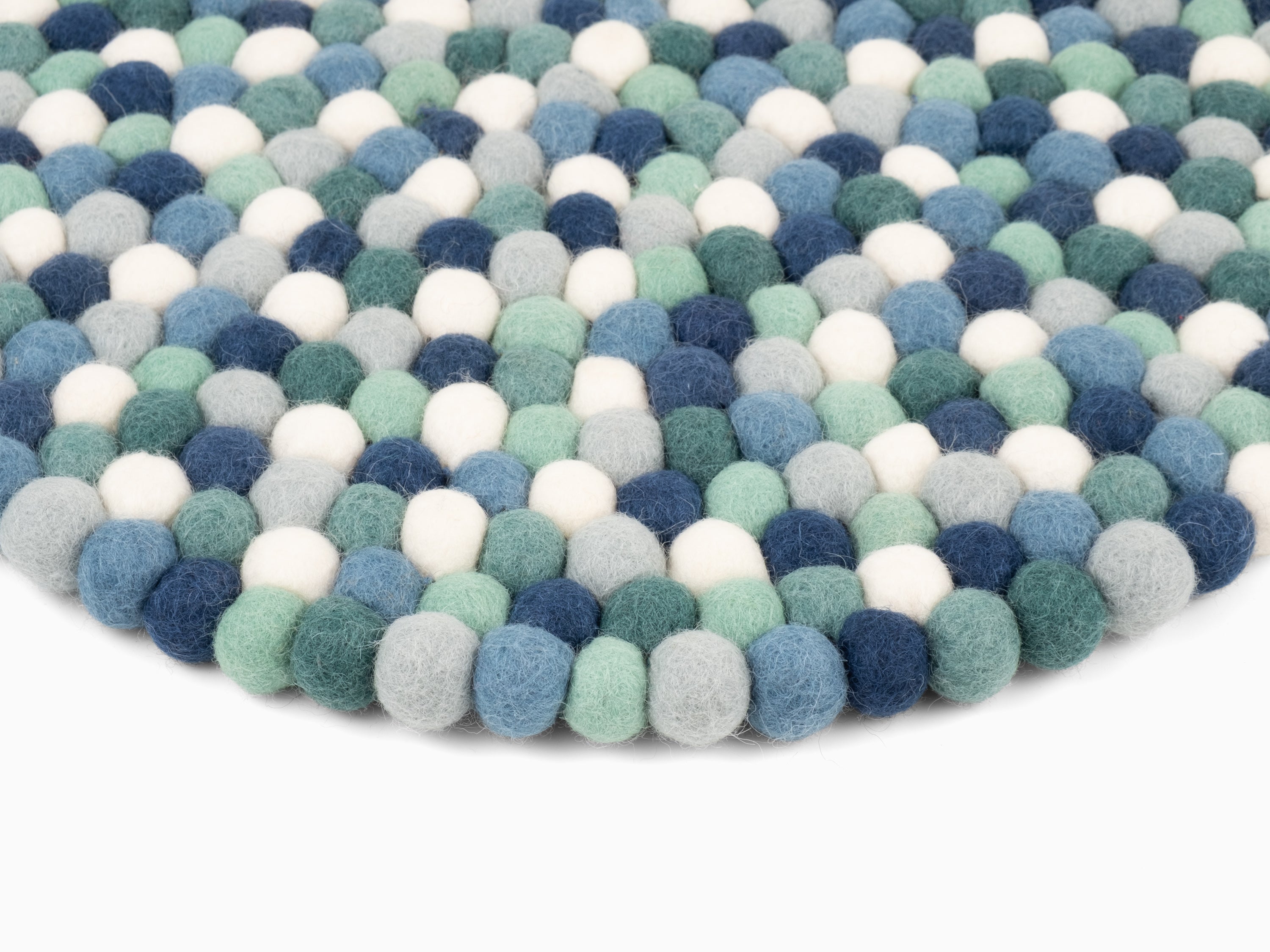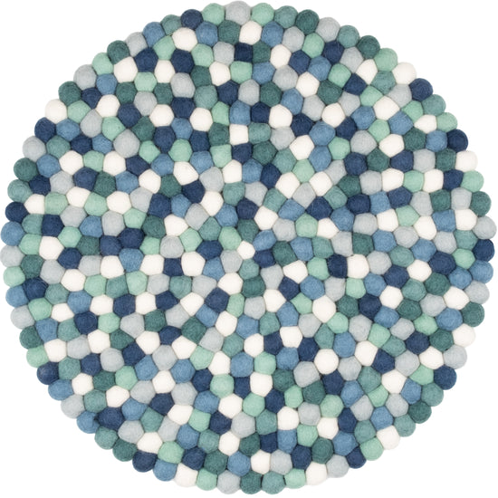 Runde, flerfarvede sædeunderlag af ren ny uld.