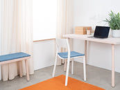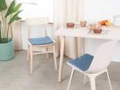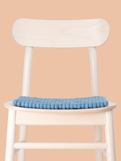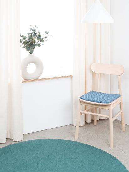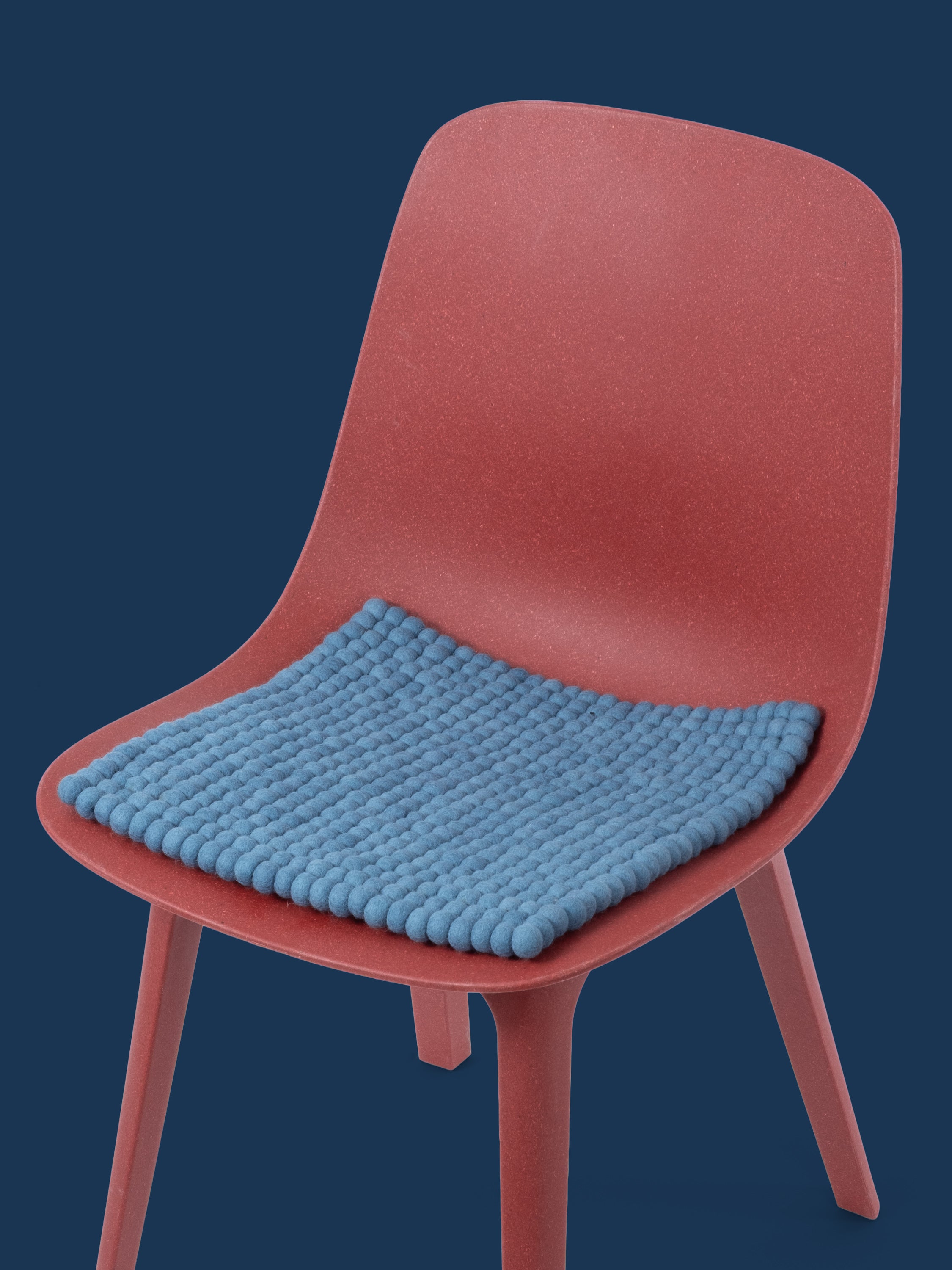 Den blå sædeunderlag Nilo giver varme og blødhed til din yndlingsstol. Fremstillet af ren ny uld, håndlavet i Nepal og produceret under fair forhold. myfelt sædehynder er vand- og smudsafvisende og kan bruges på begge sider.