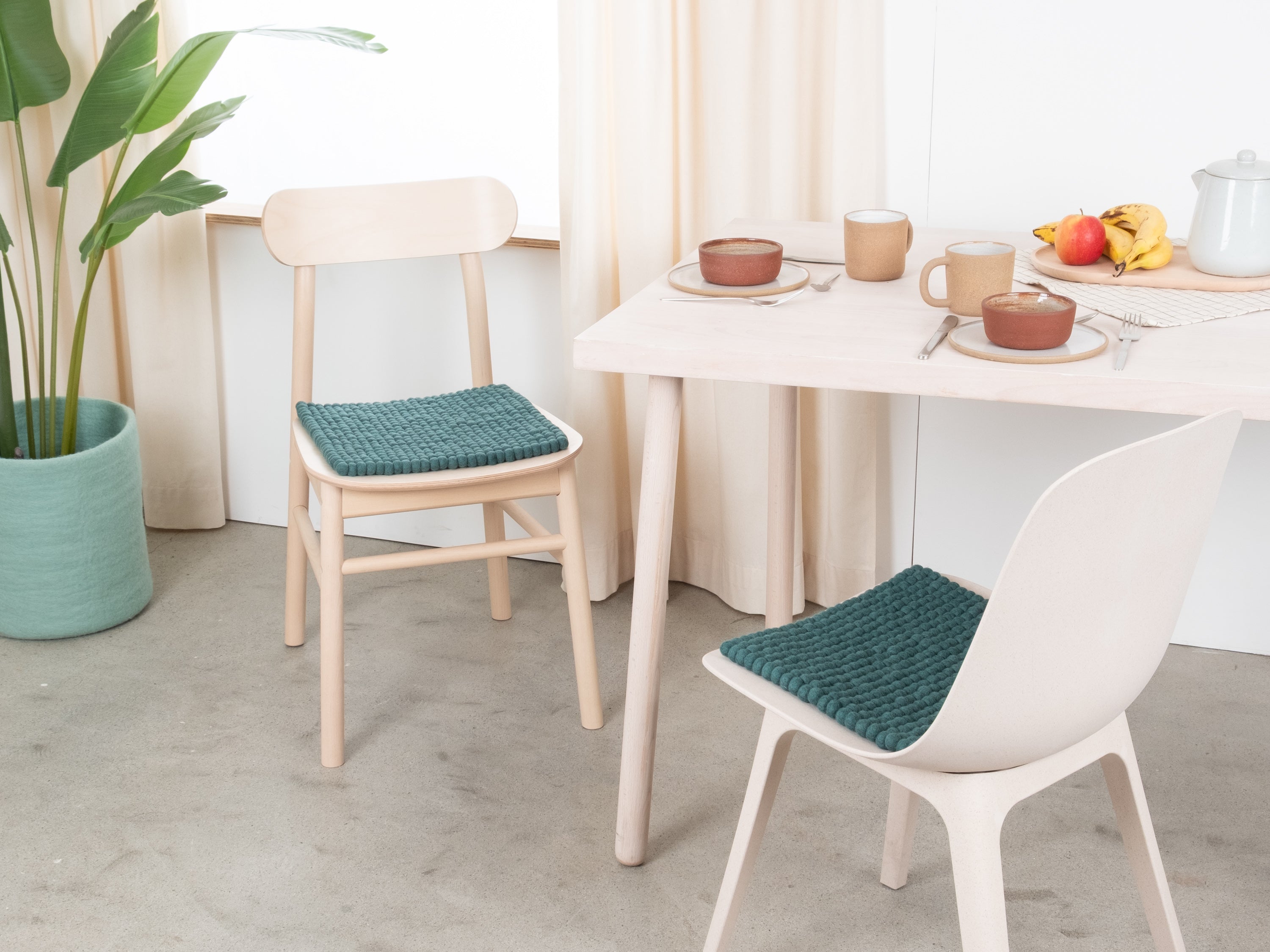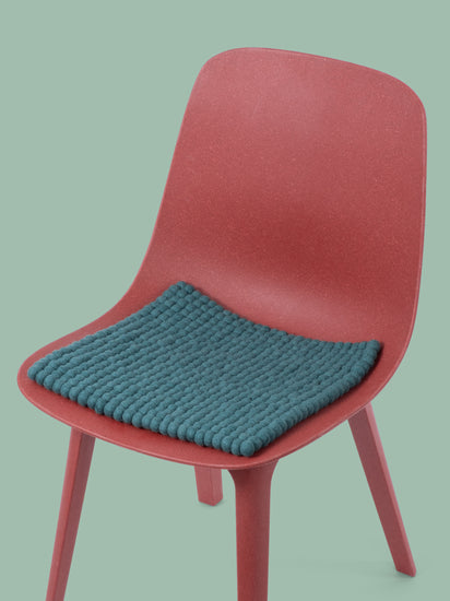 Den petrolfarvede sædeunderlag Noah giver varme og blødhed til din yndlingsstol. Fremstillet af ren ny uld, håndlavet i Nepal og produceret under fair forhold. myfelt sædehynder er vand- og smudsafvisende og kan bruges på begge sider.