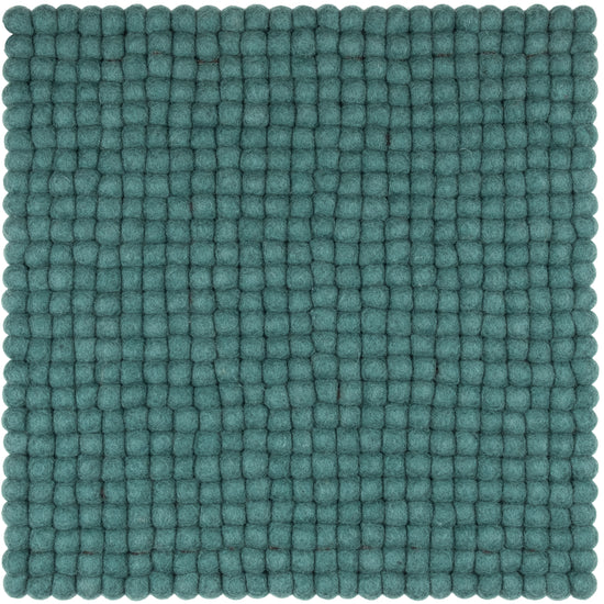 Firkantede, petrolfarvede sædeunderlag af ren ny uld.