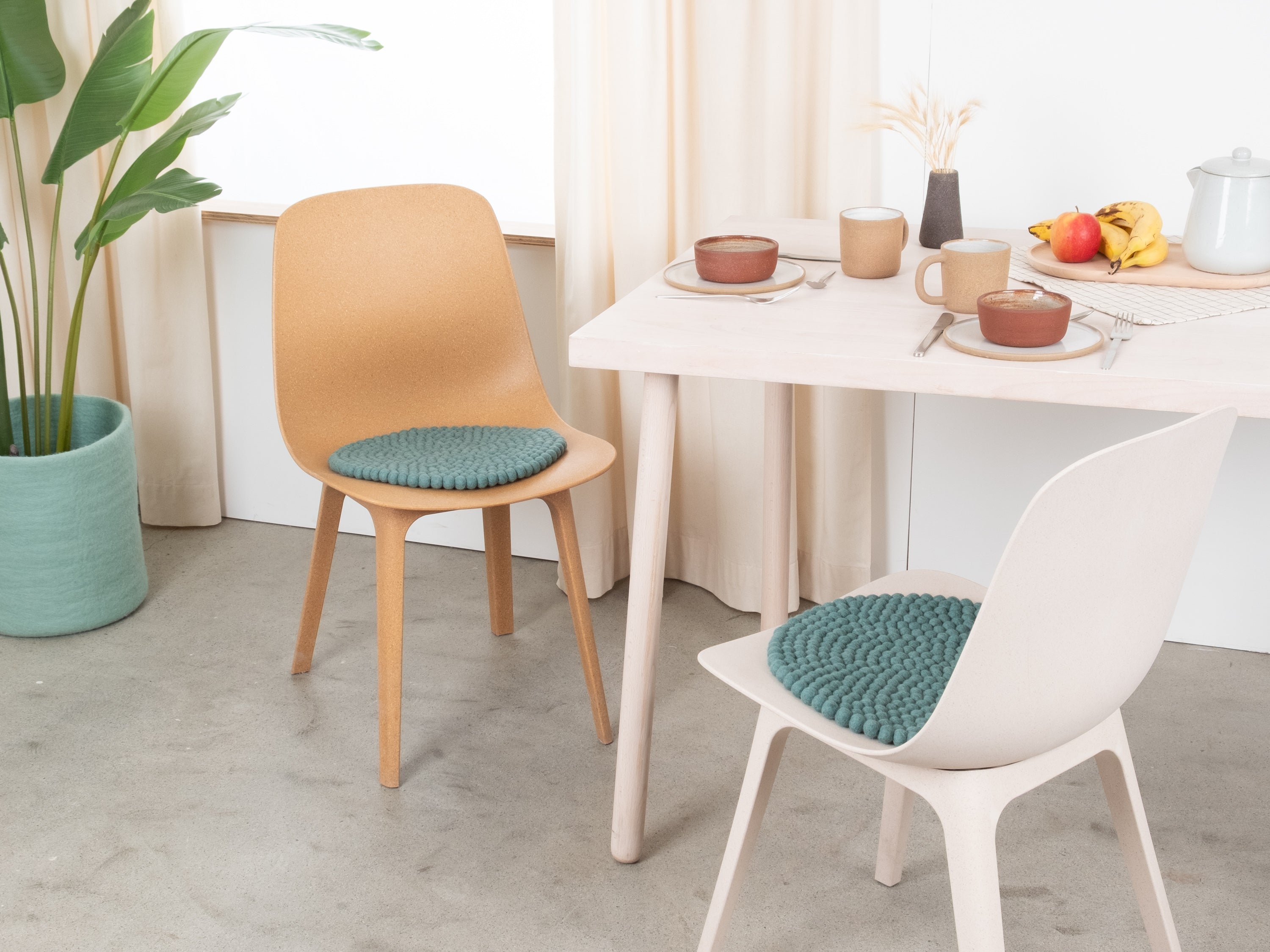 Den akvablå sædeunderlag Taro giver varme og blødhed til din yndlingsstol. Fremstillet af ren ny uld, håndlavet i Nepal og produceret under fair forhold. myfelt sædehynder er vand- og smudsafvisende og kan bruges på begge sider.