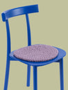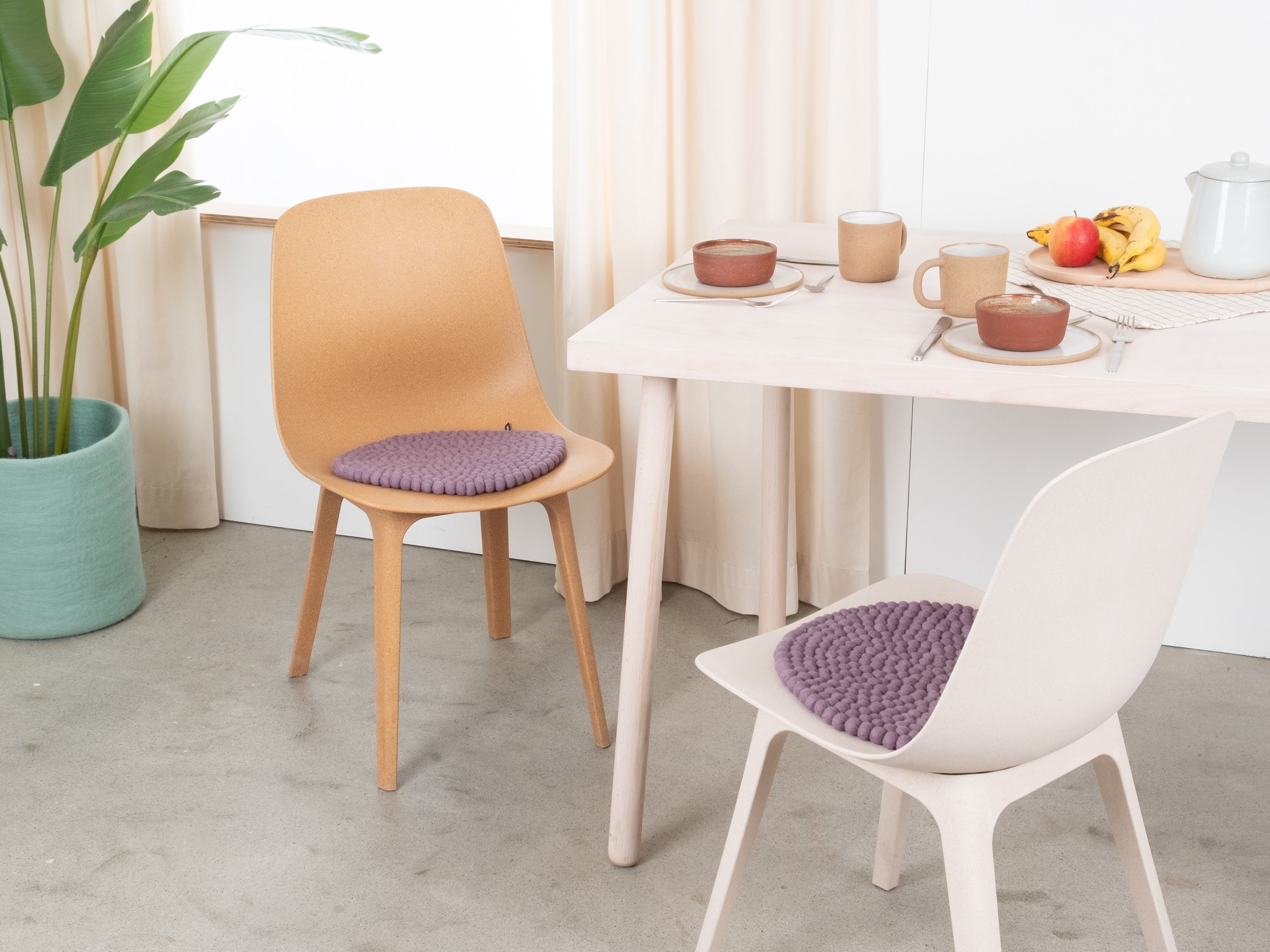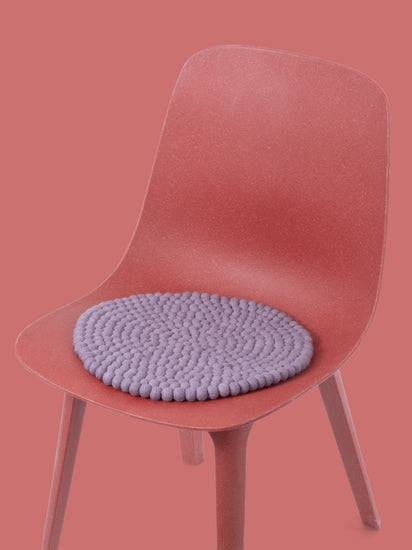 Runde, lillagrå sædeunderlag af ren ny uld.