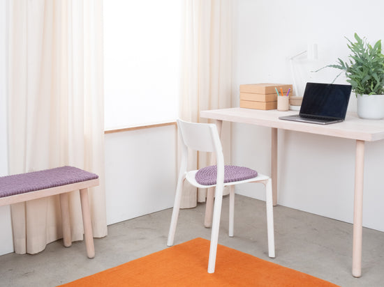 Den lillagrå sædeunderlag Tove giver varme og blødhed til din yndlingsstol. Fremstillet af ren ny uld, håndlavet i Nepal og produceret under fair forhold. myfelt sædehynder er vand- og smudsafvisende og kan bruges på begge sider.
