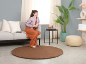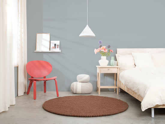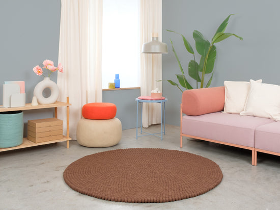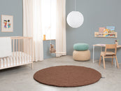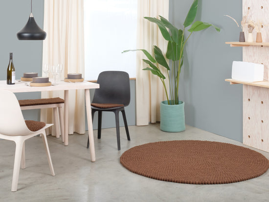 Egon går i varm chokoladebrun. Tæppet giver rummet jordforbindelse, hygge og struktur. Ideelt til læsehjørner og opholdsrum, der må få mere varme. Slidstærkt, formstabilt og behageligt at gå på. Håndlavet i Nepal – 100 % ren ny uld.