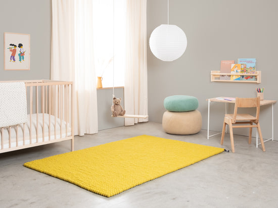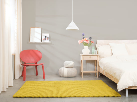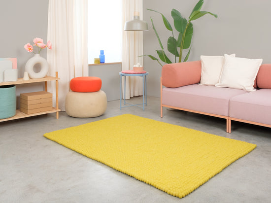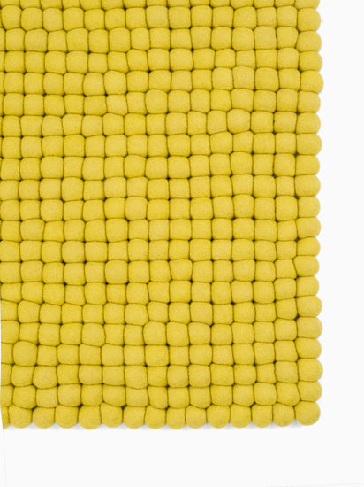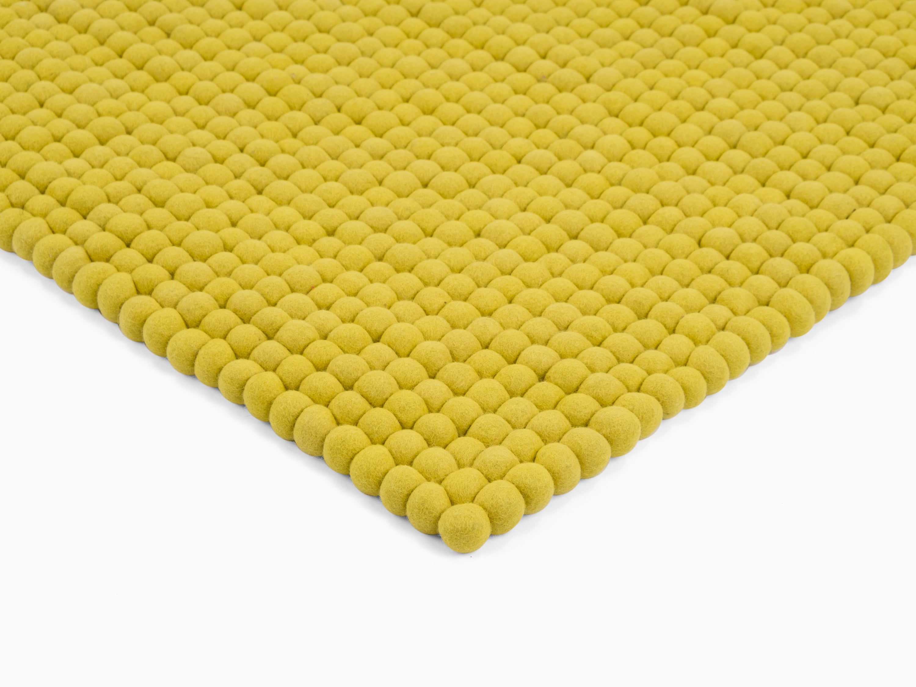 Kata er et filtkugletæppe i frisk gulgrøn. Lysende, vitalt og fuld af energi skaber det bevægelse i rummet – som glad accent i stuen eller lyspunkt i arbejdsmiljøet. Giver liv og lethed. Blødt, robust og let at vedligeholde. Håndlavet i Nepal af 100 % ren ny uld.