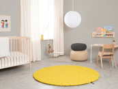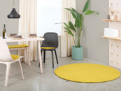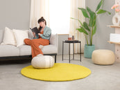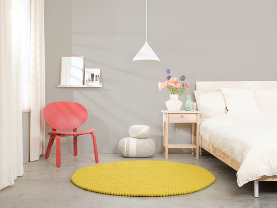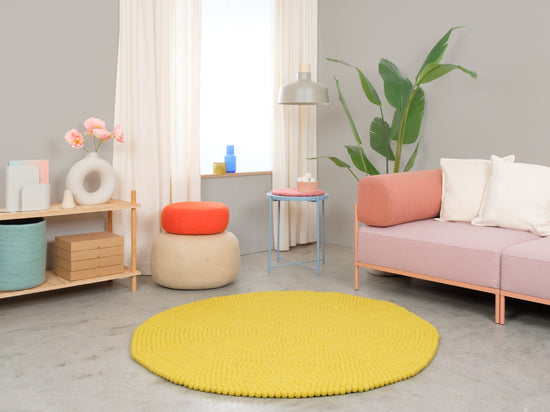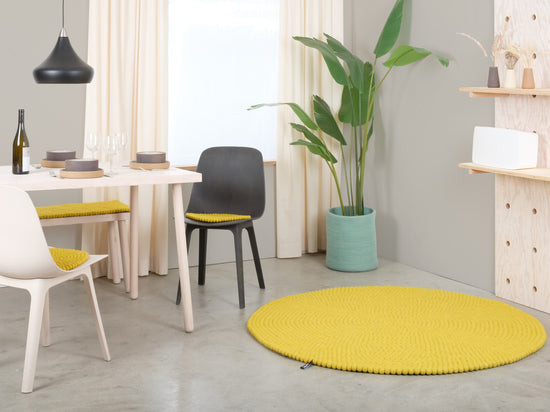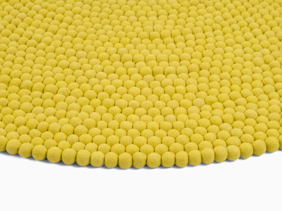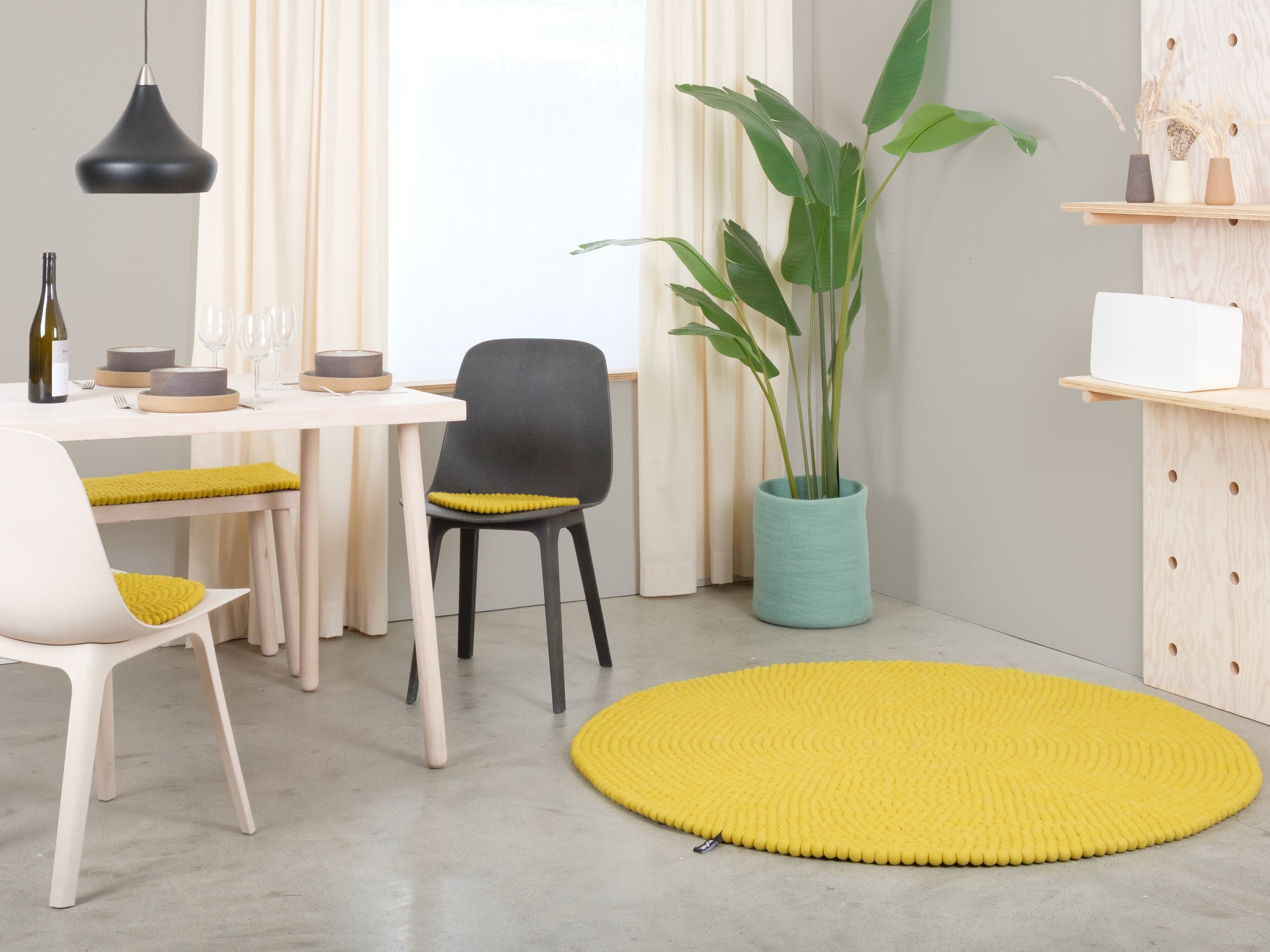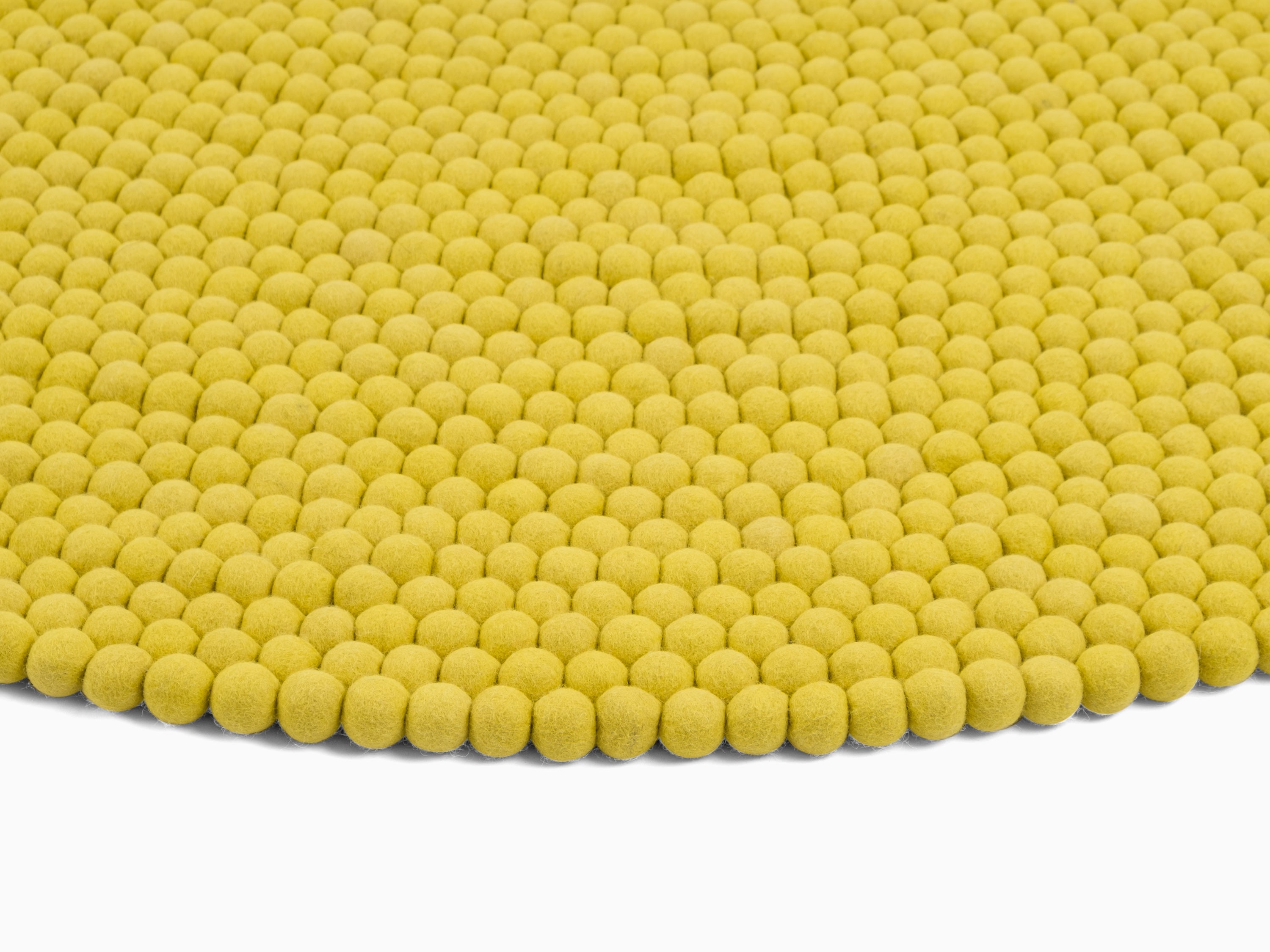 Kata er et filtkugletæppe i frisk gulgrøn. Lysende, vitalt og fuld af energi skaber det bevægelse i rummet – som glad accent i stuen eller lyspunkt i arbejdsmiljøet. Giver liv og lethed. Blødt, robust og let at vedligeholde. Håndlavet i Nepal af 100 % ren ny uld.