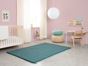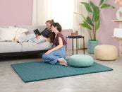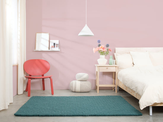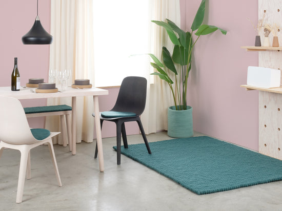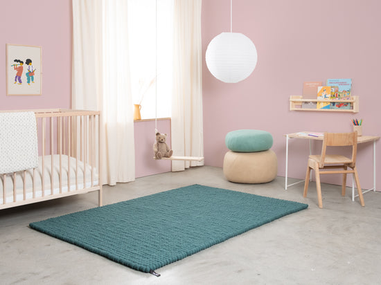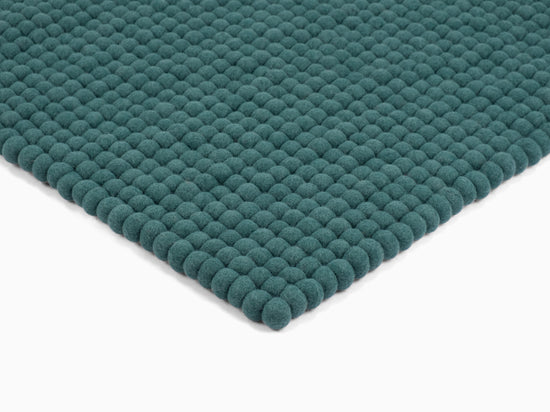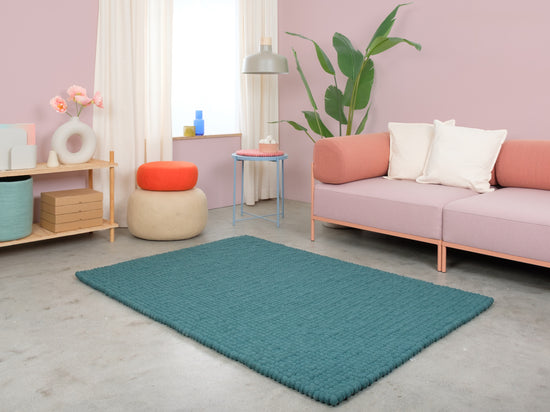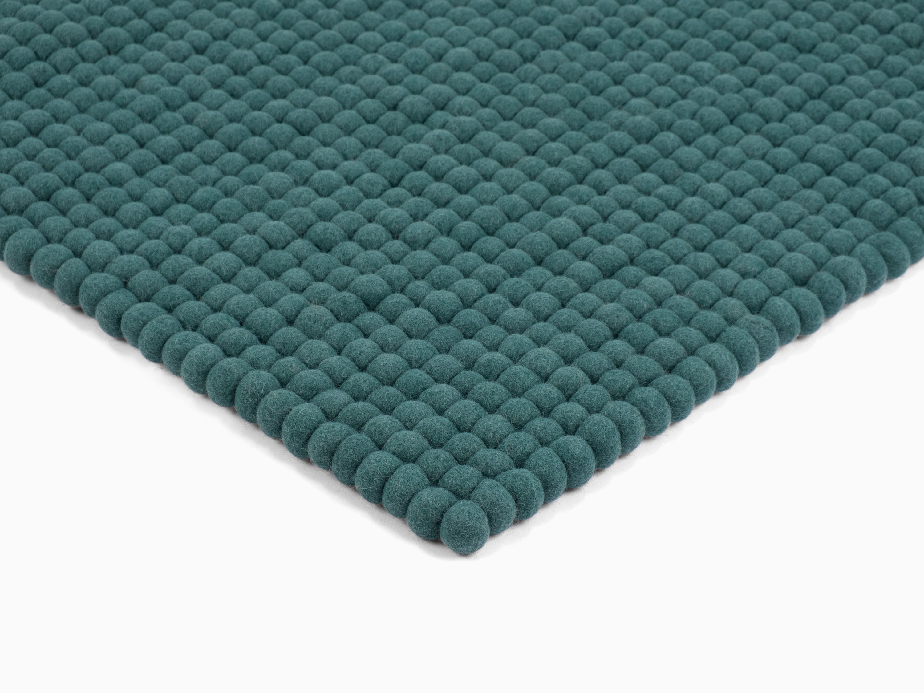 Noah er et filtkugletæppe i dyb petrol. Kraftfuldt, klart og samtidig afslappende – som statement eller rolig base. Passer til lyst træ, beton og neutrale farver. Mærkbart blødt, holdbart og let at vedligeholde. Håndlavet i Nepal af 100 % ren ny uld.