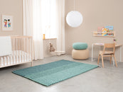 En dyb tone i salviegrøn. Og imellem: et strejf af lys. Sage bringer ro ind i rummet. Og klarhed i følelsen. Et tæppe som en skovtur uden ord.