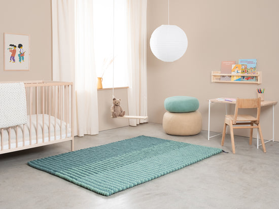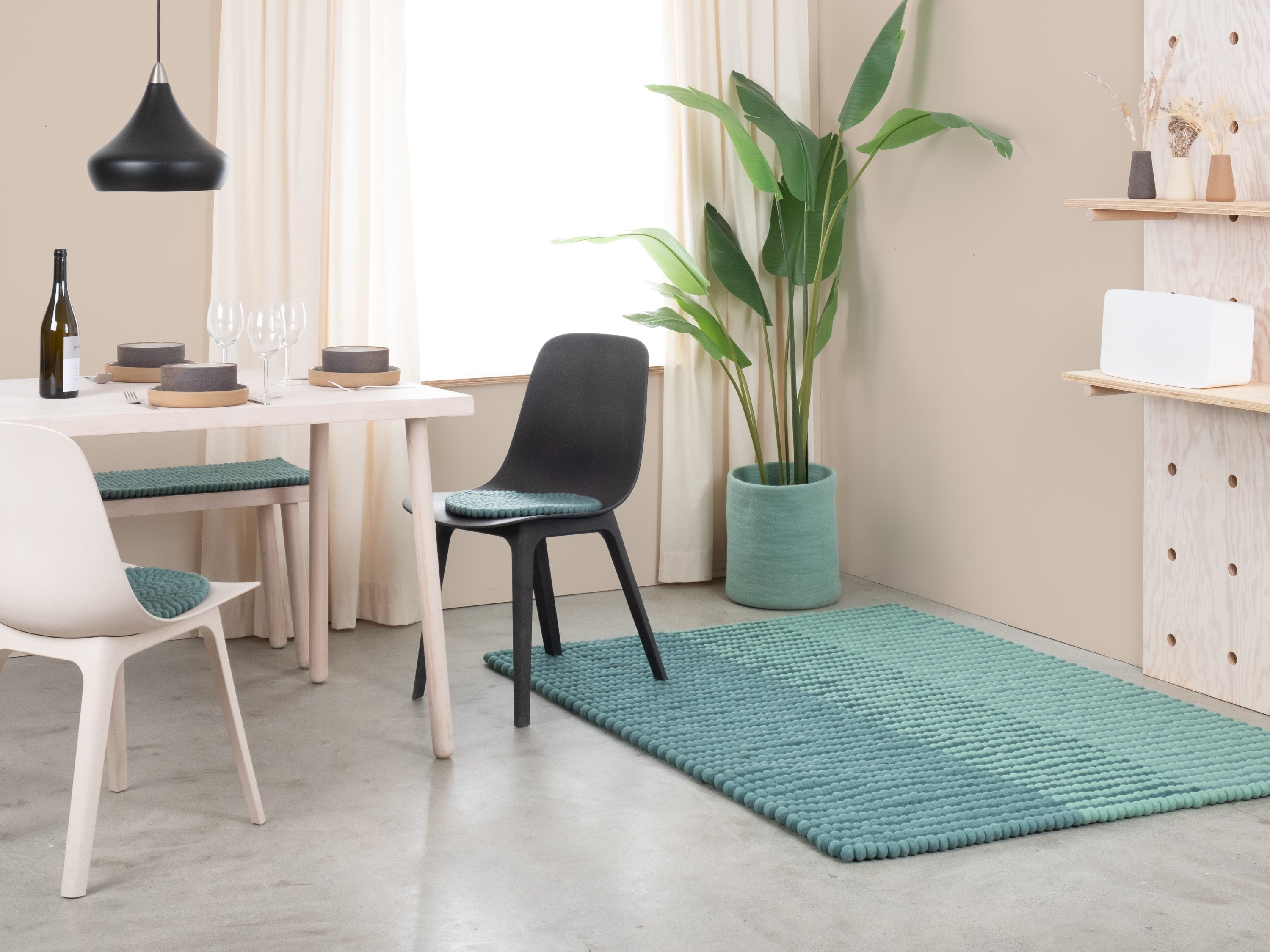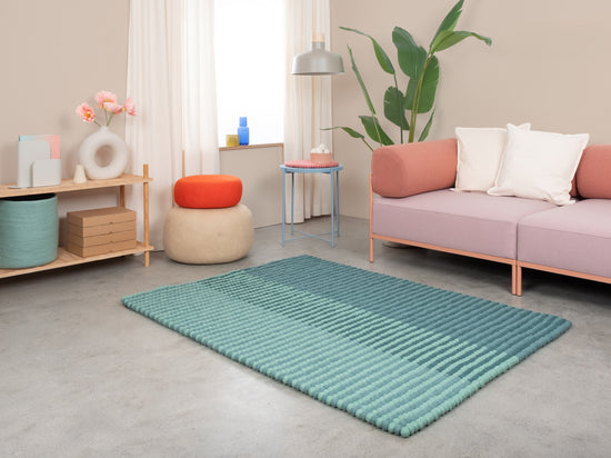 Rektangulært kugletæppe i filt, fremstillet af ren ny uld.