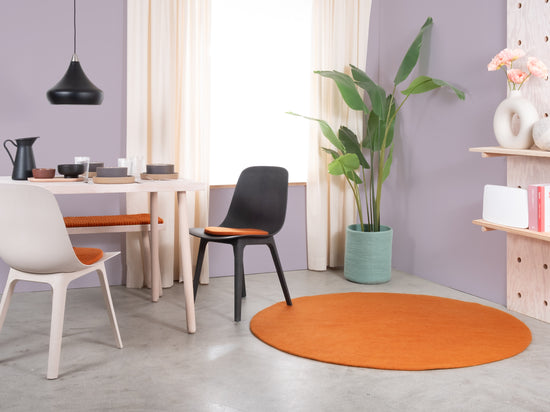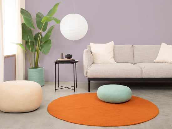 Afra bringer en varm orange ind i rummet. Indbydende og energisk uden at blive dominerende. Perfekt til at varme kølige rum op eller sætte accenter. Robust, let at pleje og behageligt under fødderne. Håndlavet i Nepal – af 100 % ren ny uld.