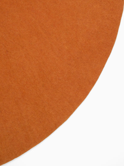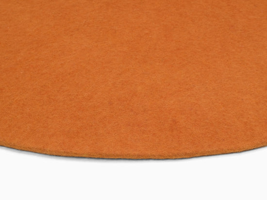 Rundt, okkergult filttæppe af ren ny uld.