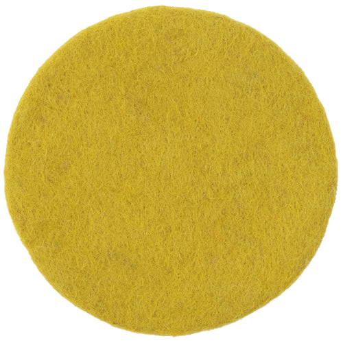 Rundt, okkergult filttæppe af ren ny uld.