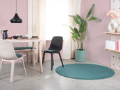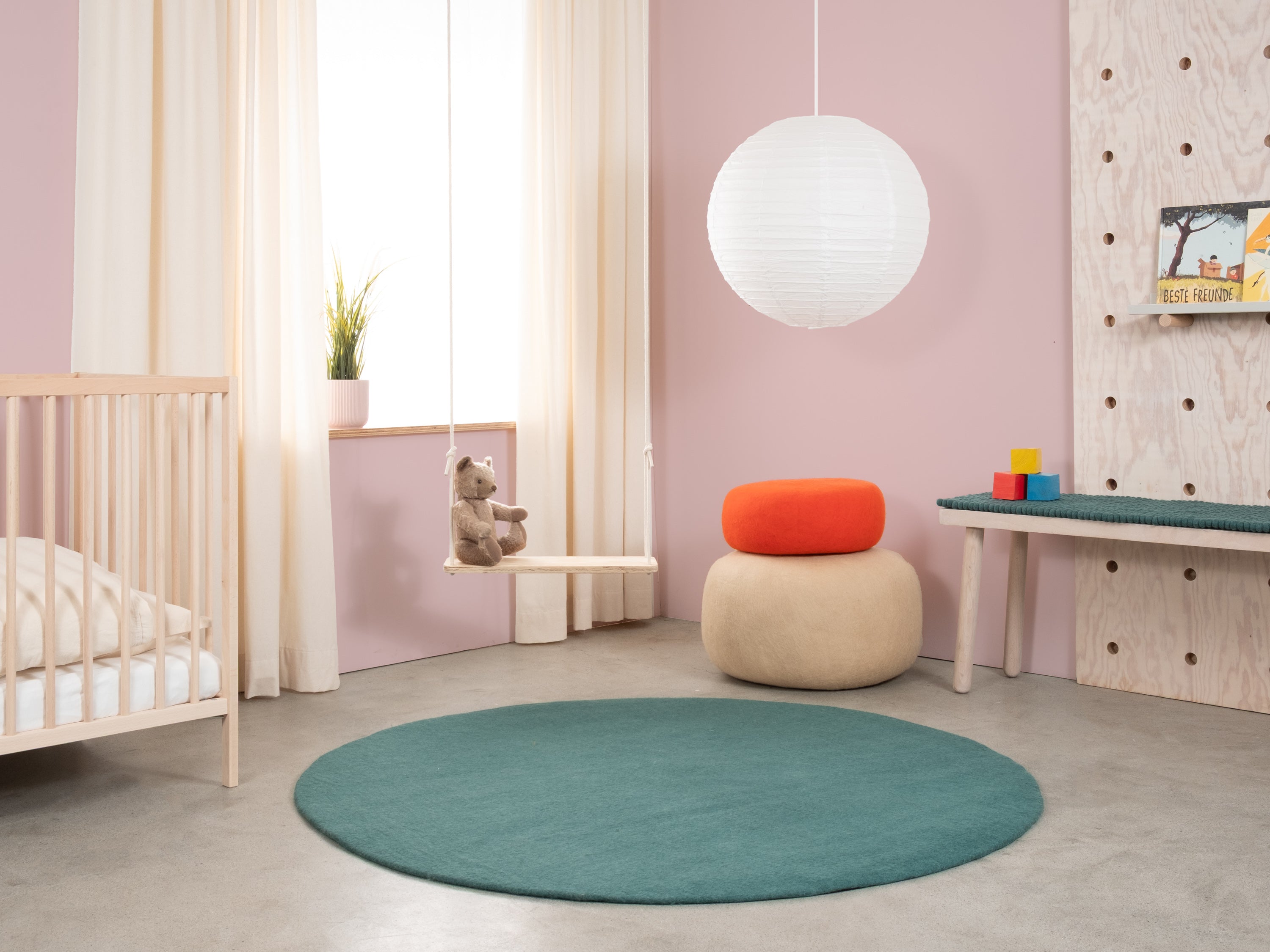 Noah er et filttæppe i dyb petrol. Kraftfuldt, klart og samtidig afslappende – som statement eller rolig base. Passer til lyst træ, beton og neutrale farver. Mærkbart blødt, holdbart og let at vedligeholde. Håndlavet i Nepal af 100 % ren ny uld.