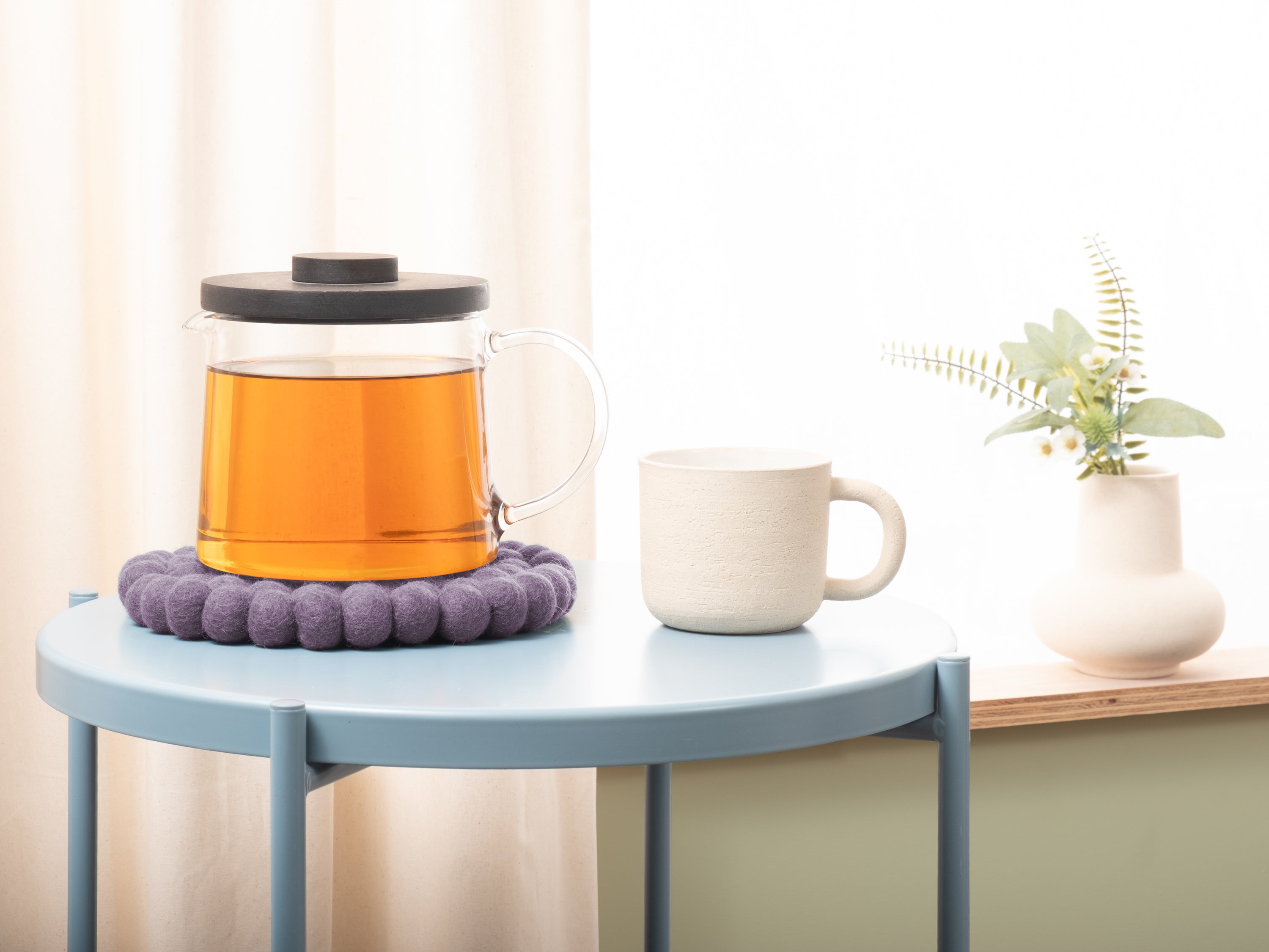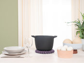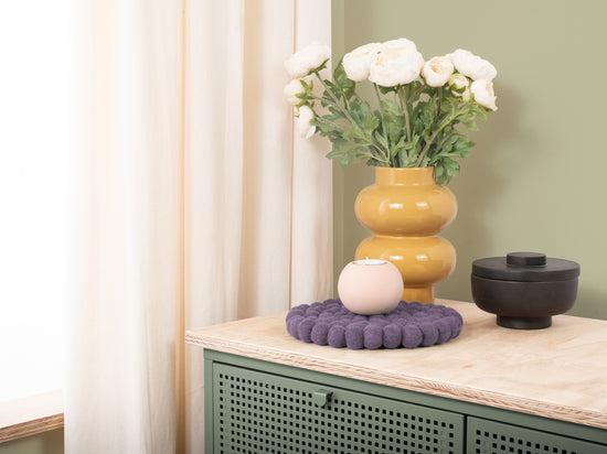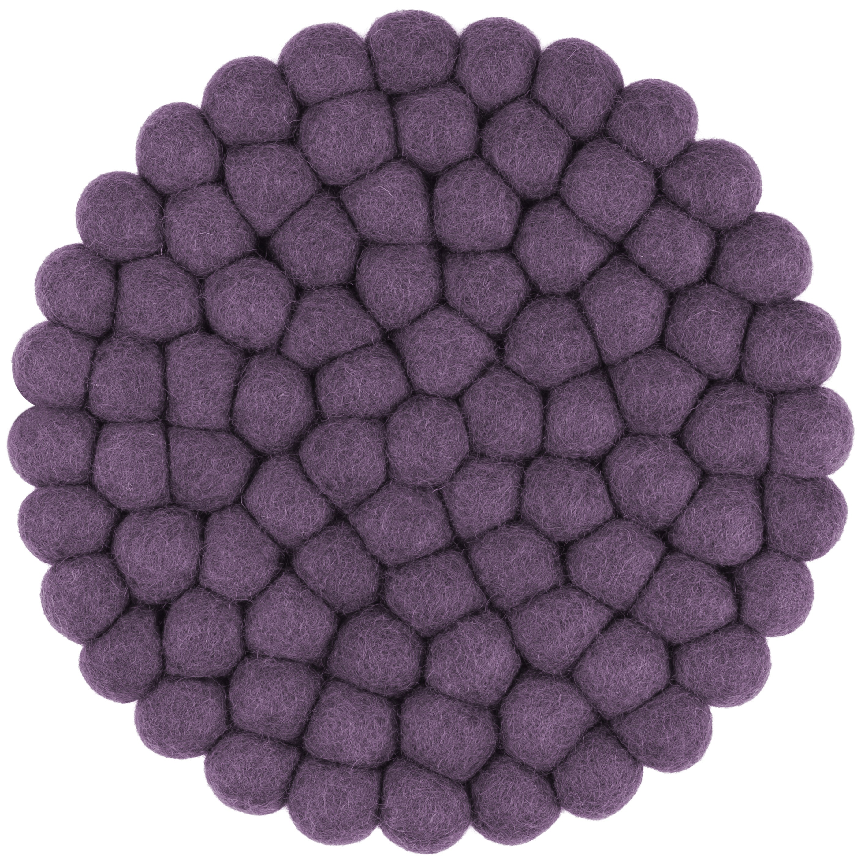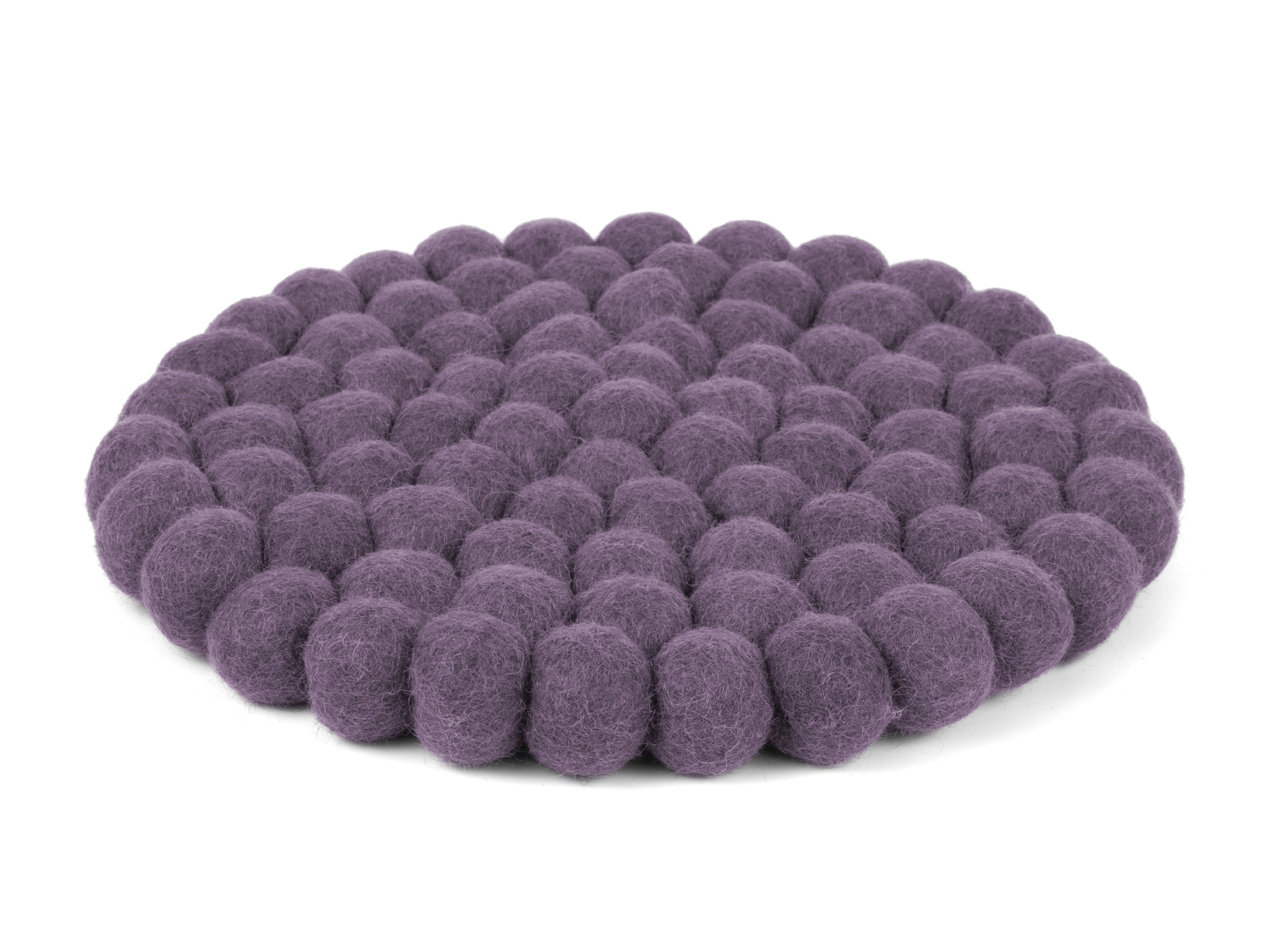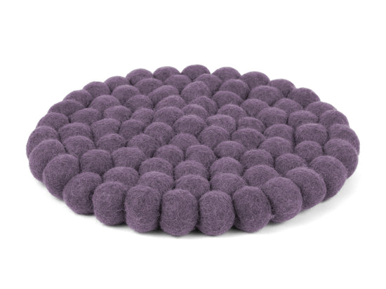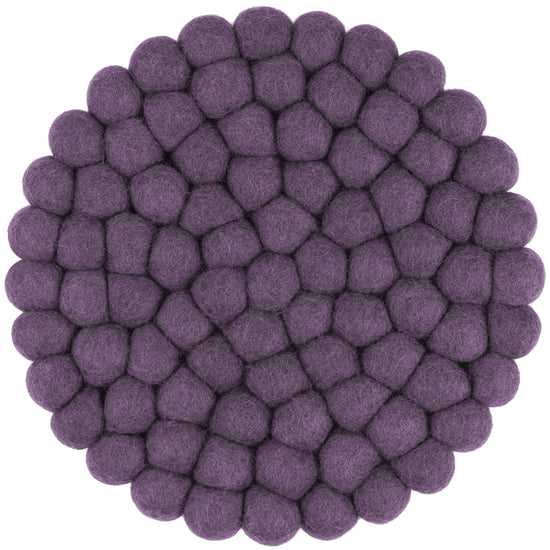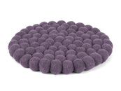 Rund, violet grydeunderlag af ren uld