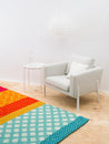 Rektangulært kugletæppe af filt lavet af ren jomfruuld.