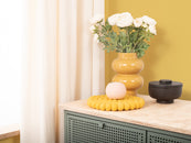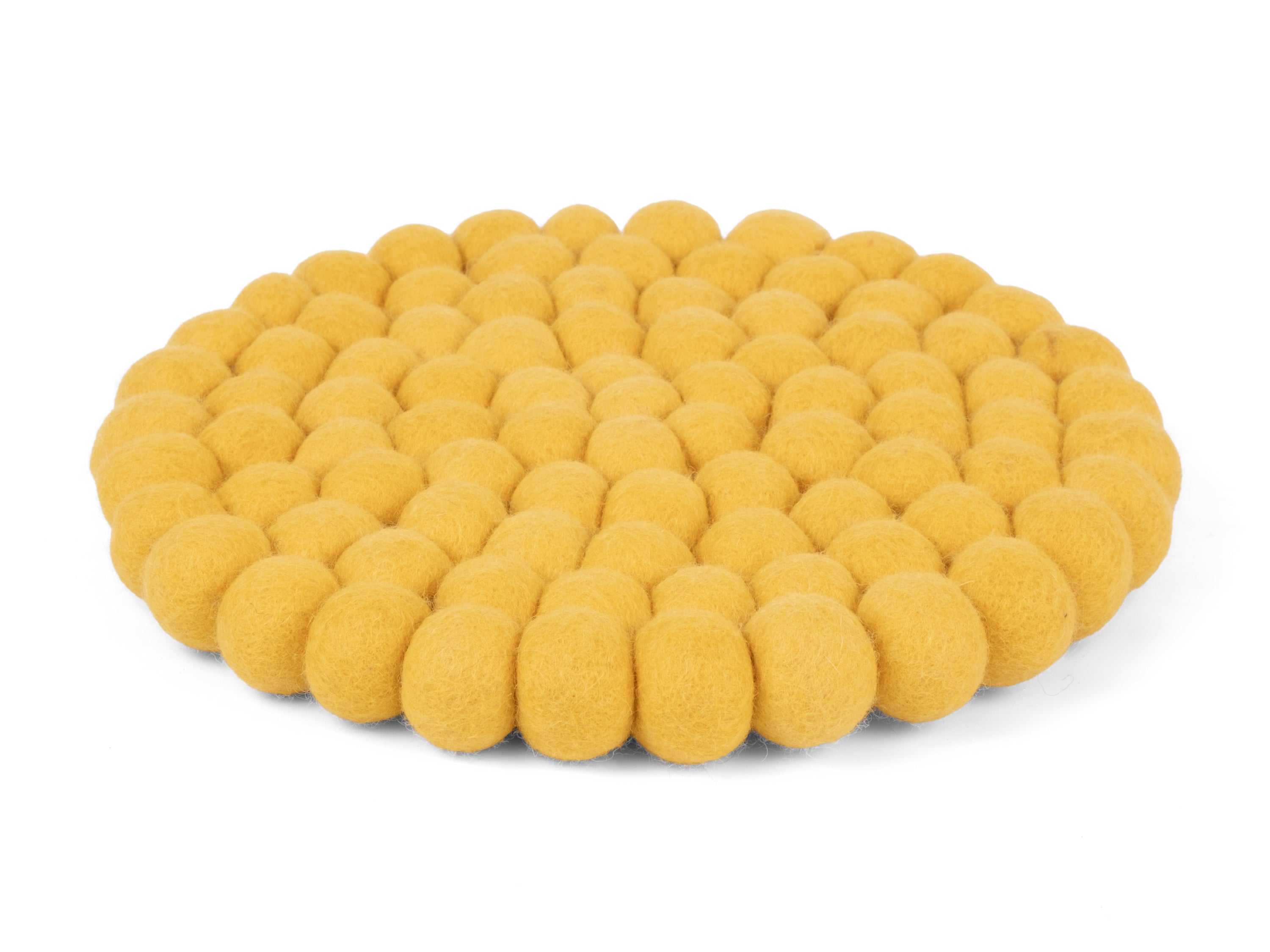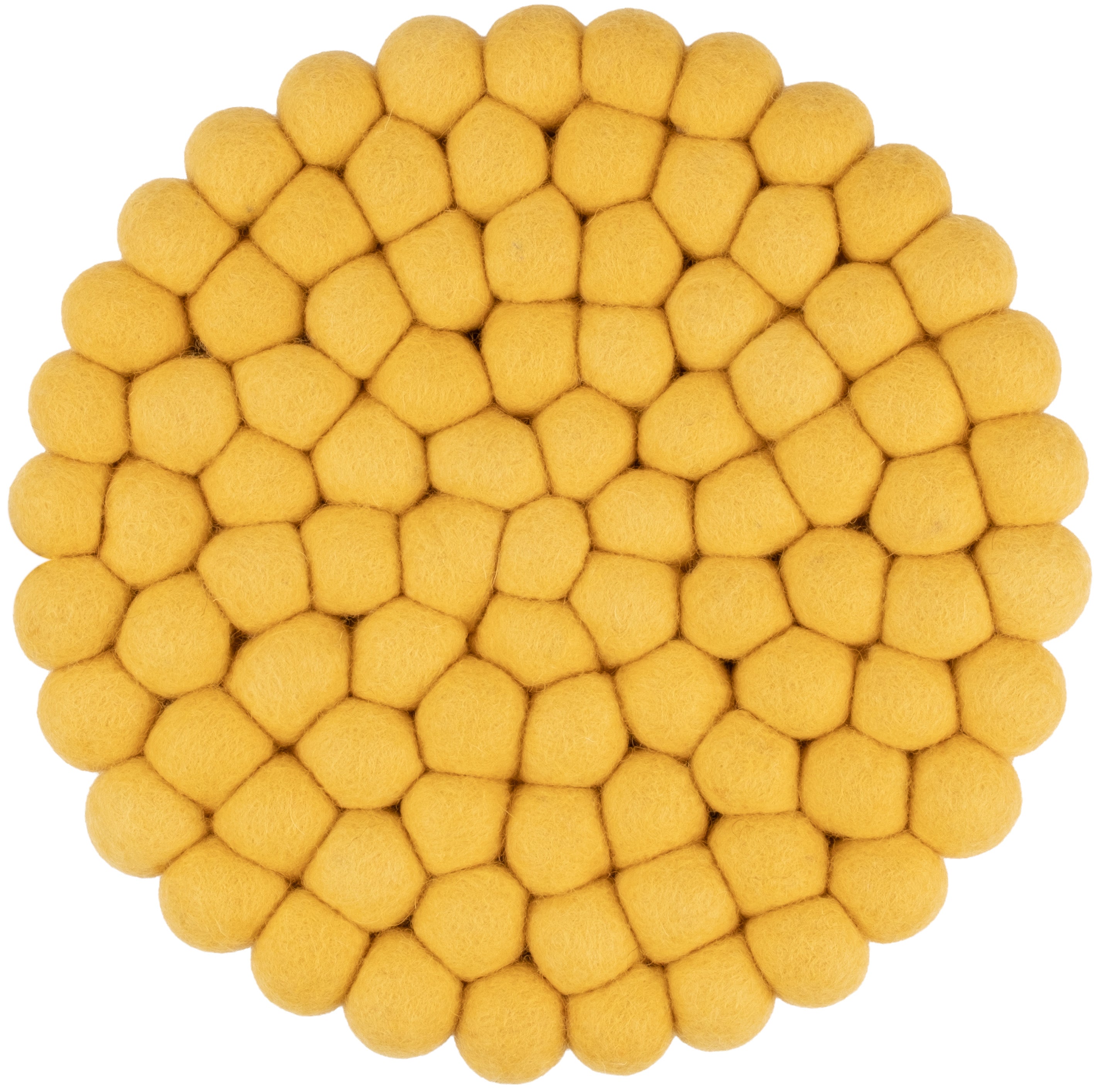 Grydelappen Kira i farven gul kombinerer funktion med et charmerende udseende. Robust, varmebestandig, vand- og smudsafvisende samt vendbar. Fremstillet af ren nyuld, håndlavet i Nepal under fair forhold.