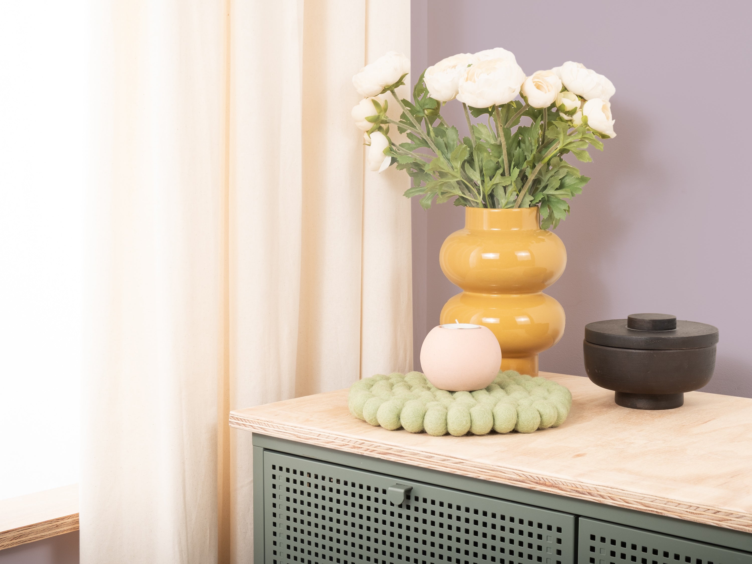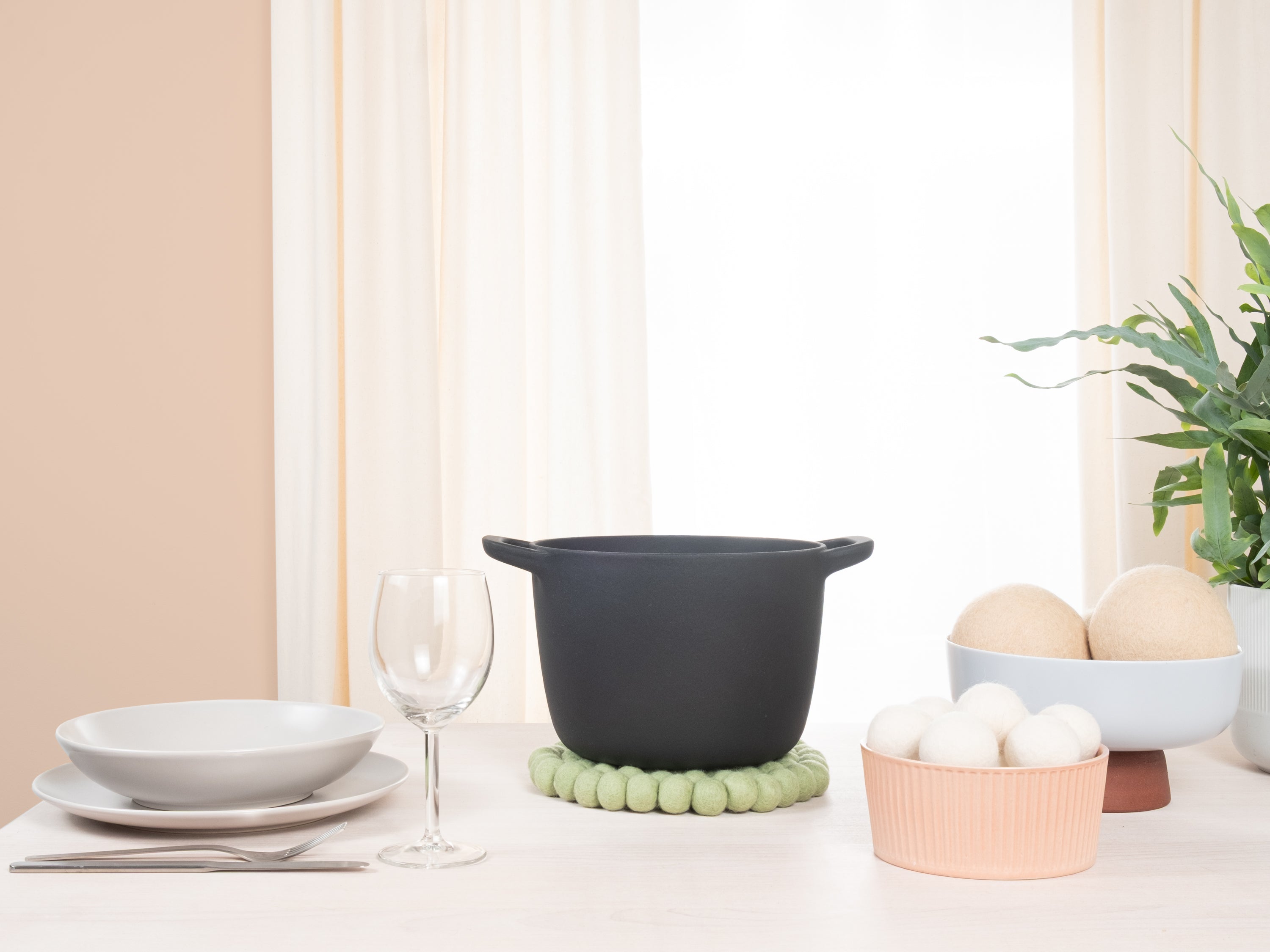 Grydelappen Lasse i farven lysegrøn kombinerer funktion med et charmerende udseende. Robust, varmebestandig, vand- og smudsafvisende samt vendbar. Fremstillet af ren nyuld, håndlavet i Nepal under fair forhold.