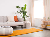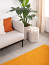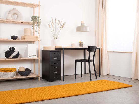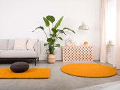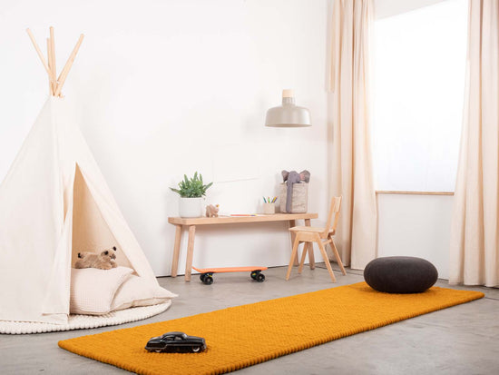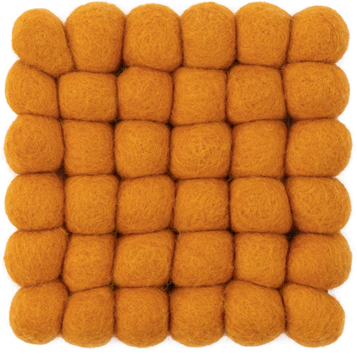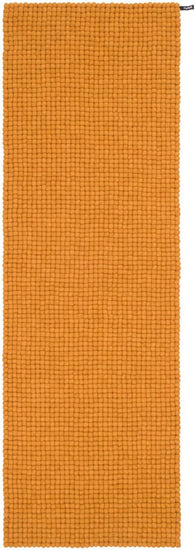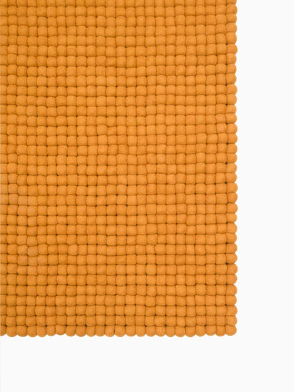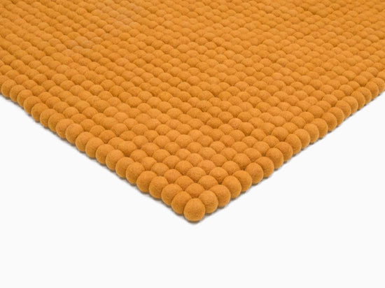 Rektangulært filtkugletæppe i okkergul, lavet af ren ny uld.