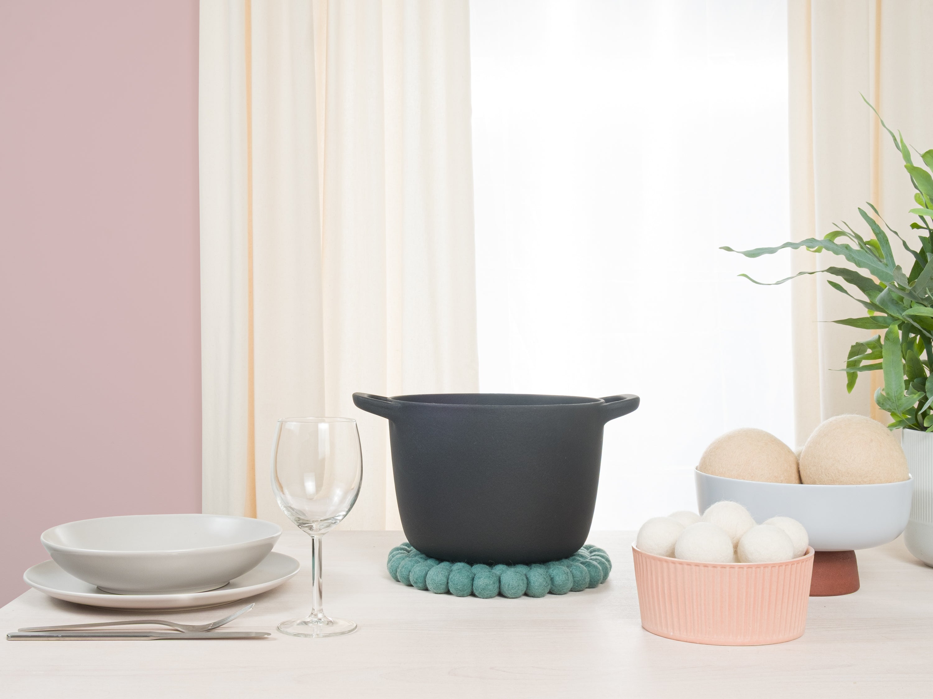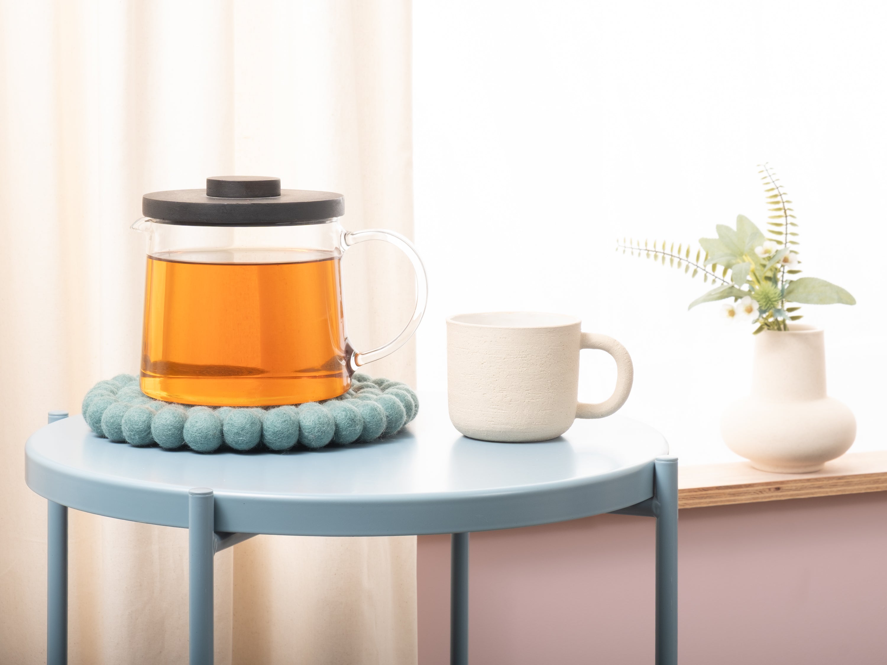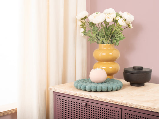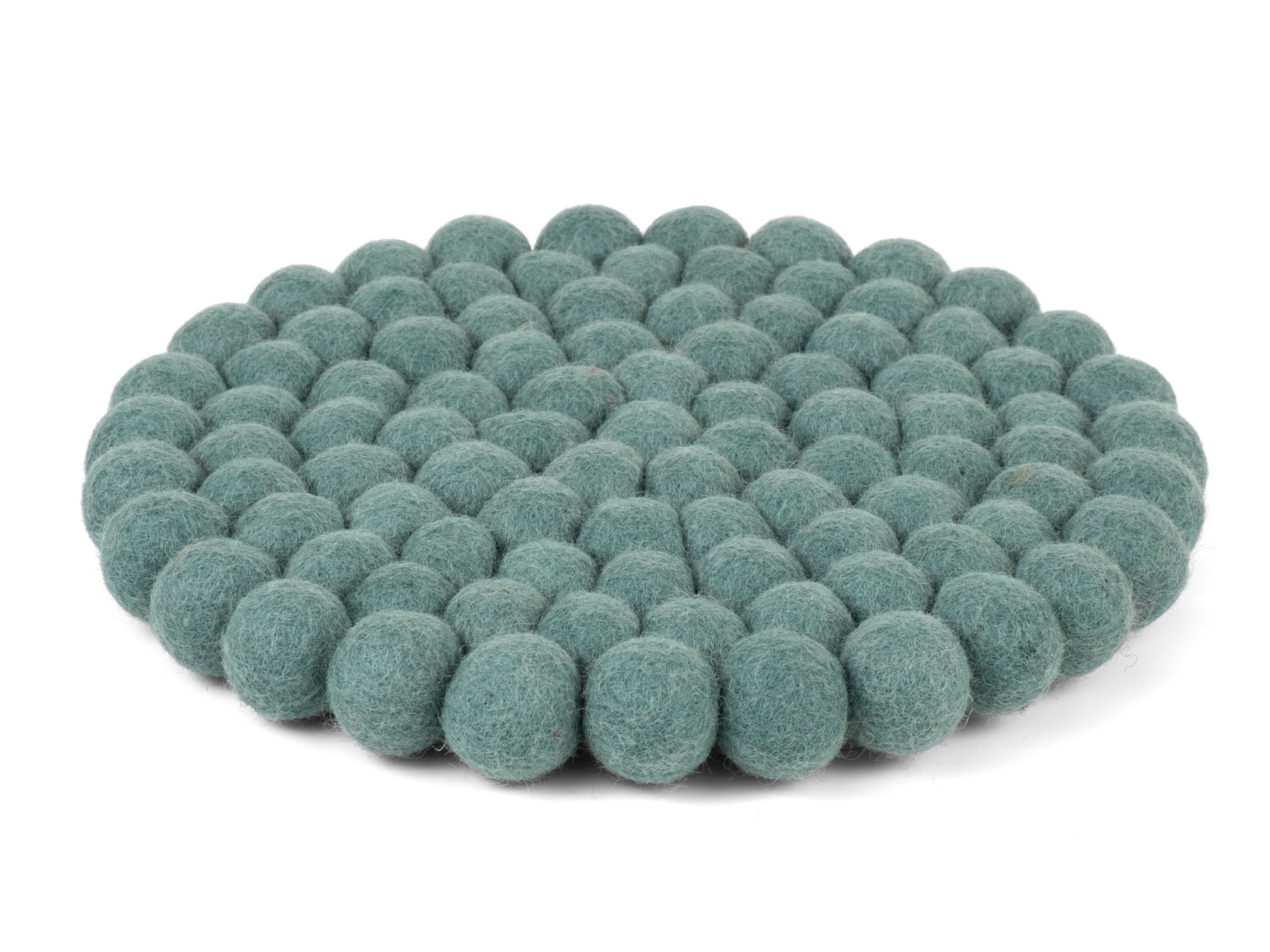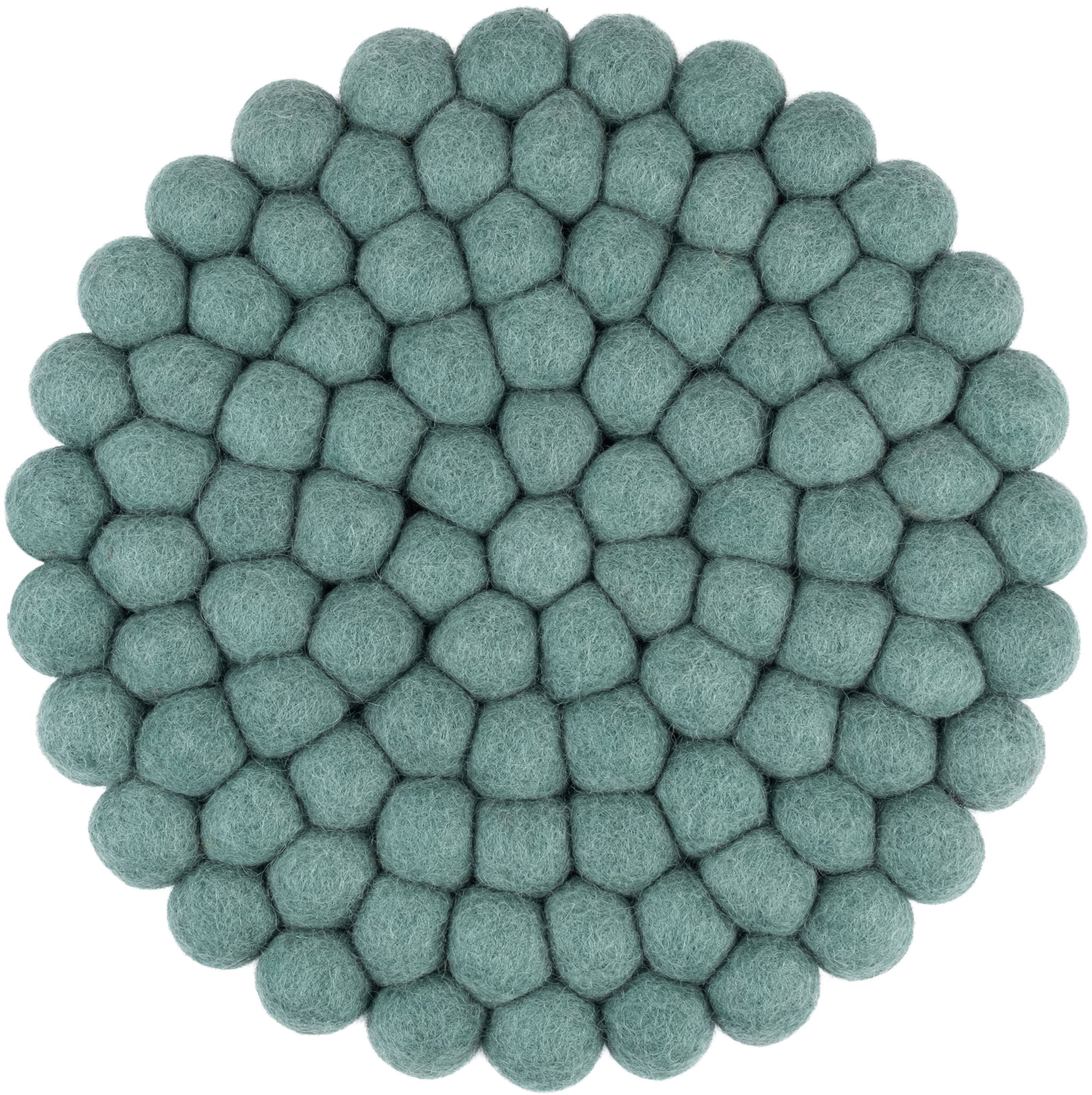 Runder, aquafarbener Topfuntersetzer aus reiner Schurwolle