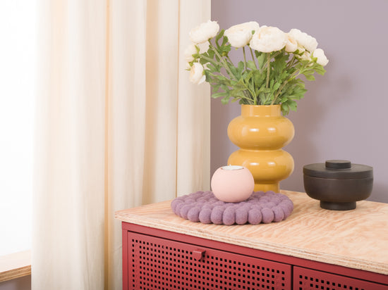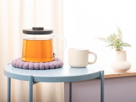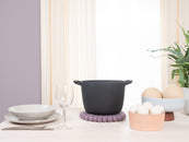 Grydelappen Tove i farven lilla-grå kombinerer funktion med et charmerende udseende. Robust, varmebestandig, vand- og smudsafvisende samt vendbar. Fremstillet af ren nyuld, håndlavet i Nepal under fair forhold.